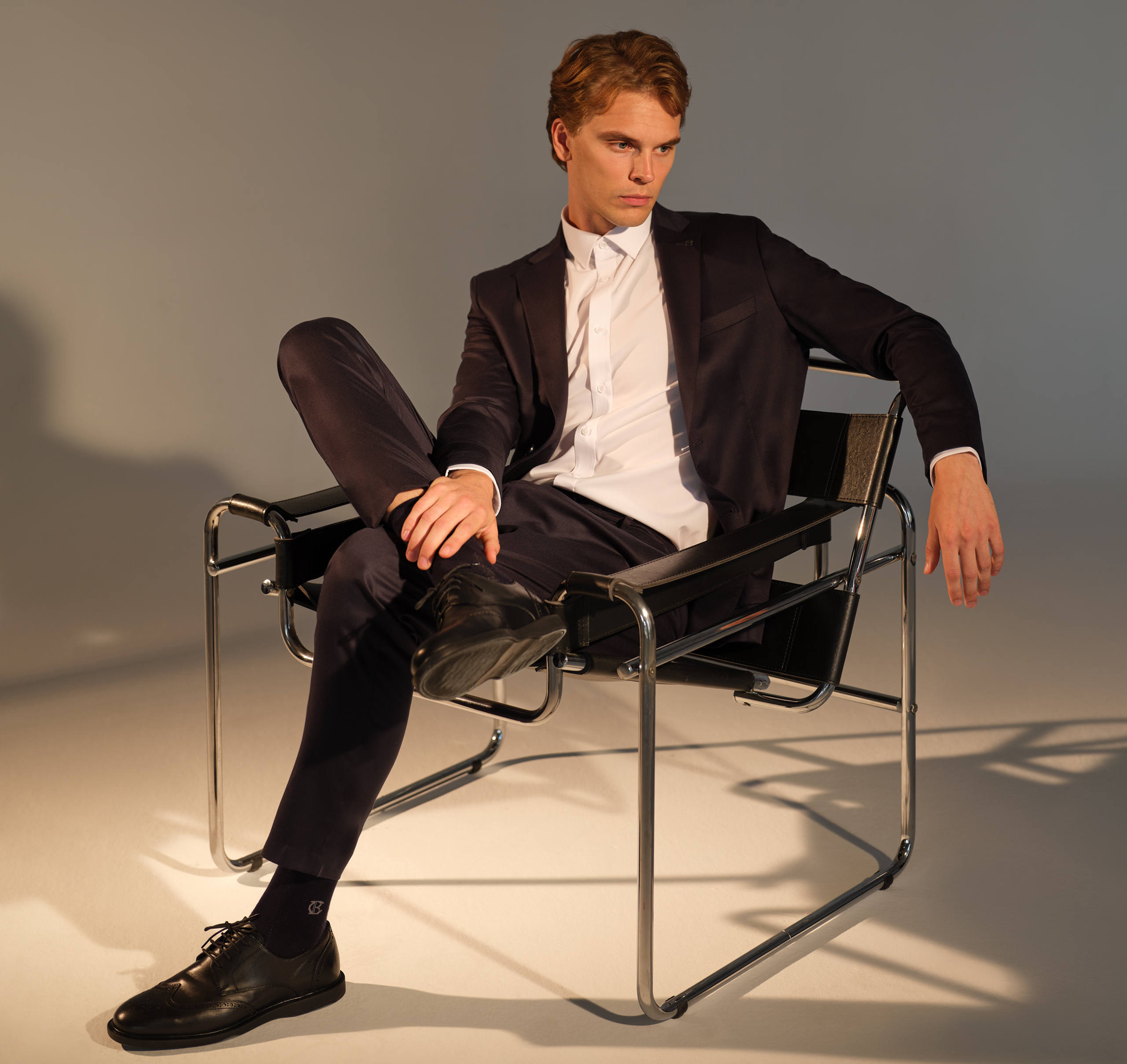 The form, fitting the body with precision, establishes a modern balance through the rhythm of its lines, while the depth of tones defines the character of the look. Every detail exists to create a strong presence—without the need for excess.