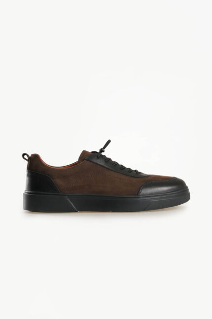 Brown Leather Detailed Lace-Up Brown Suede Sneakers