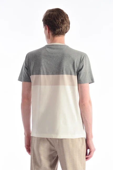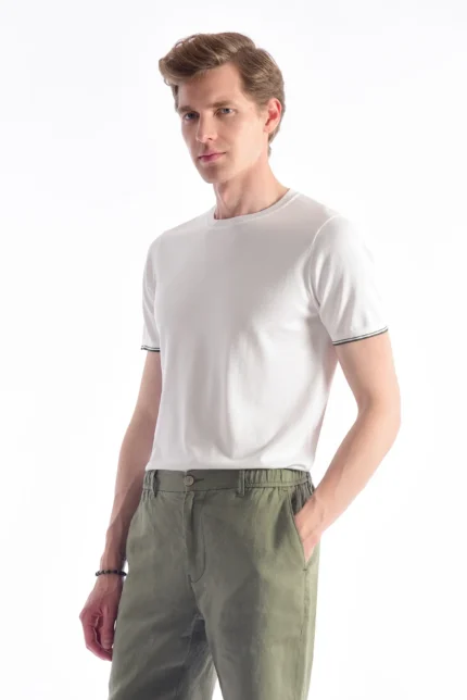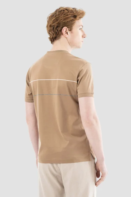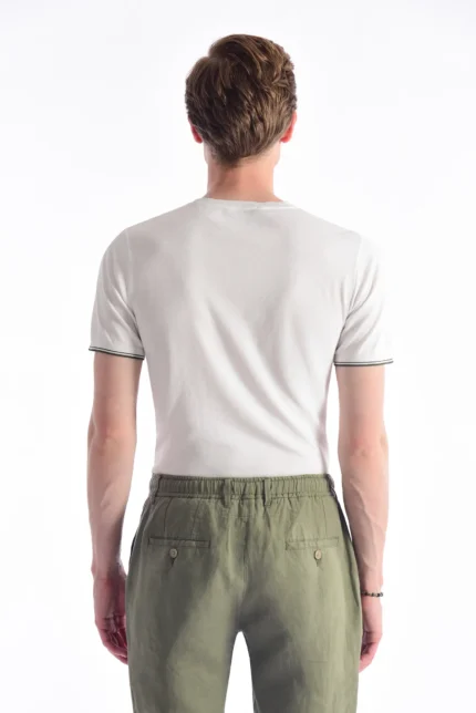 Zippered Collar and Stripe Detailed Polo Neck Knit T-Shirt