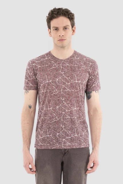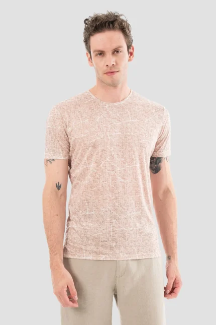 Dusty Rose T-Shirt With Buttoned Polo Neck