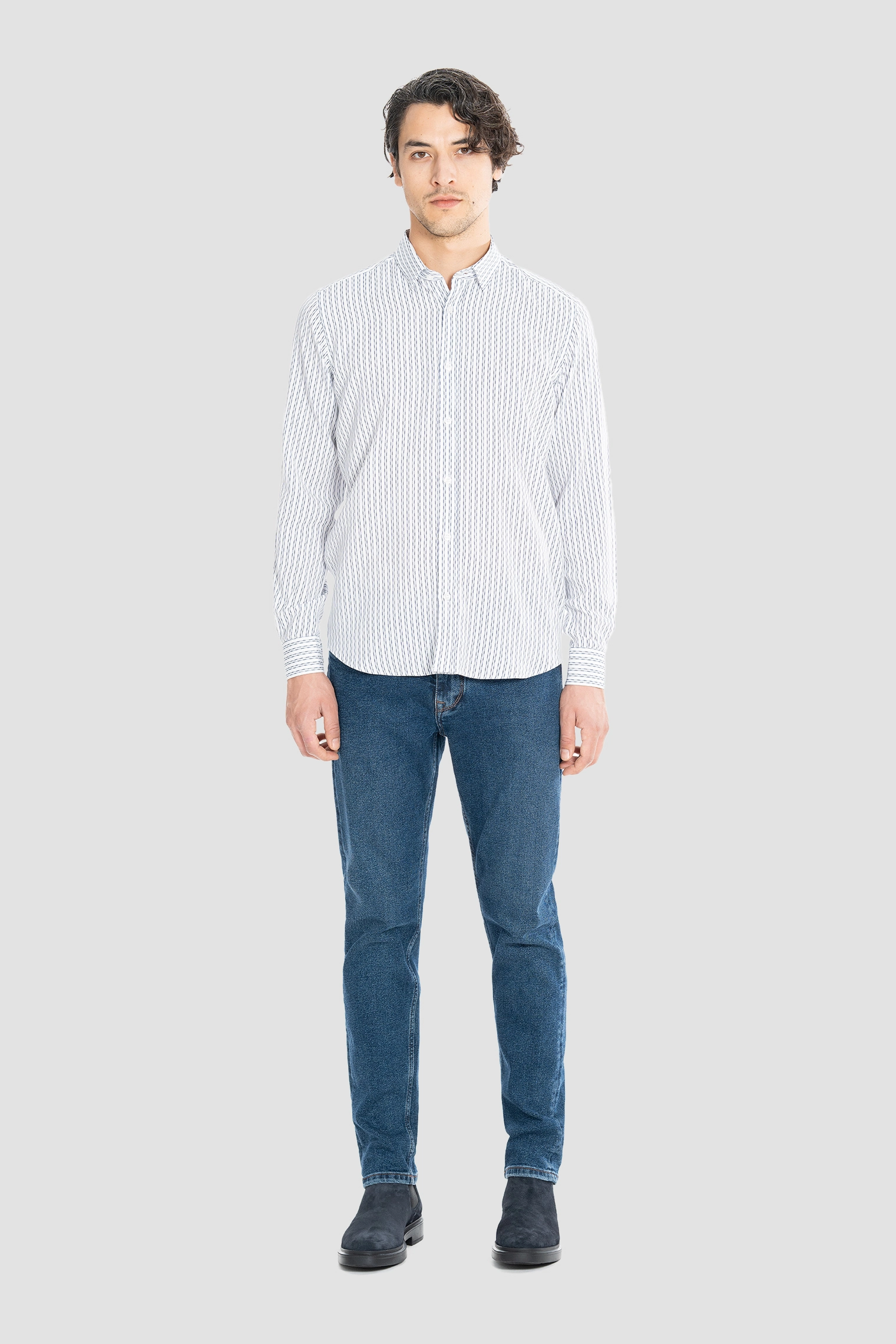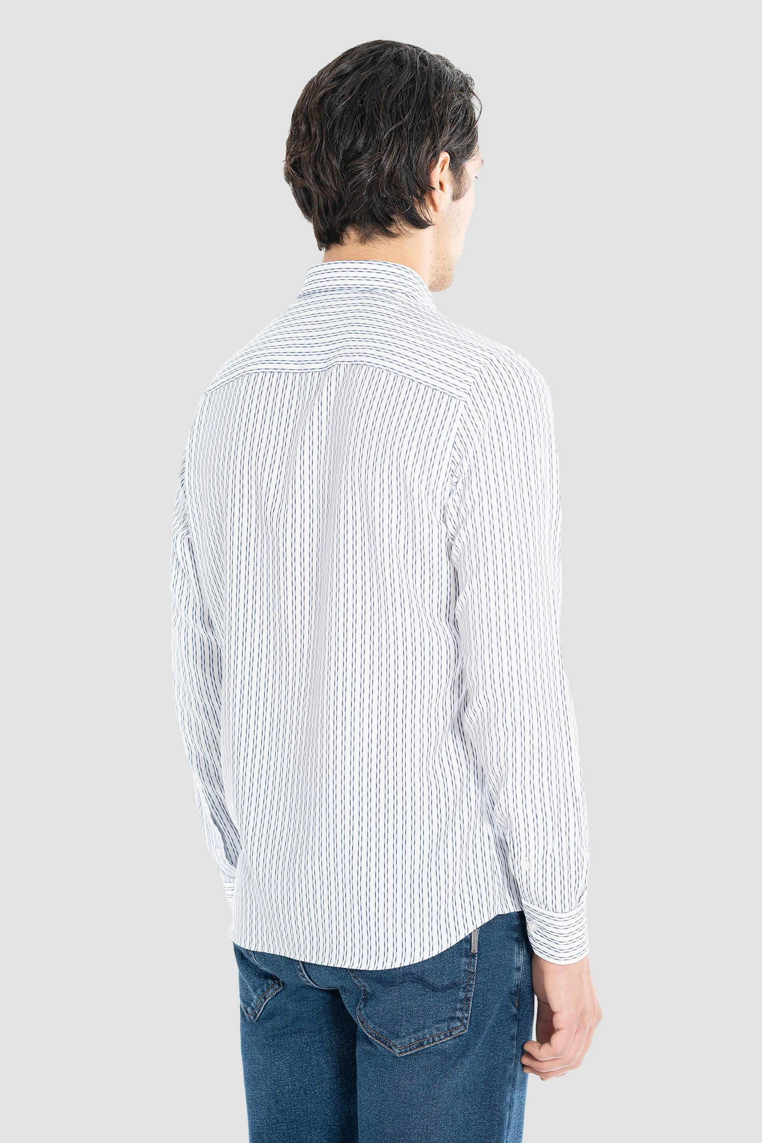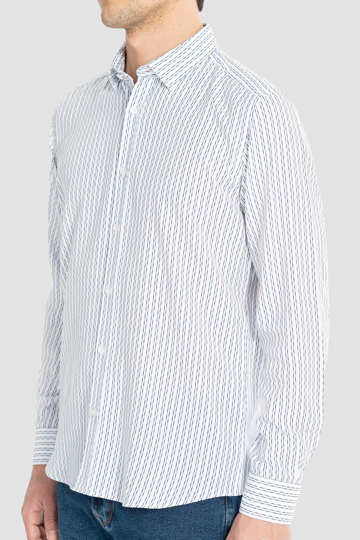Эта белая рубашка в полоску, привлекающая внимание своими элегантными линиями и удобным кроем, дополнит как Ваш повседневный стиль, так и Ваш деловой шик.nВ то время как она обеспечивает комфорт в течение всего дня благодаря своей мягкой и дышащей ткани, она создает современный и стильный образ благодаря тонким деталям.nЭта рубашка, которую Вы можете легко сочетать с джинсами или брюками из ткани, является вечной вещью, которая адаптируется к любой обстановке.nЭта рубашка, которая станет одним из самых полезных и стильных предметов Вашего гардероба, предлагает стиль, который предпочтет каждый мужчина.