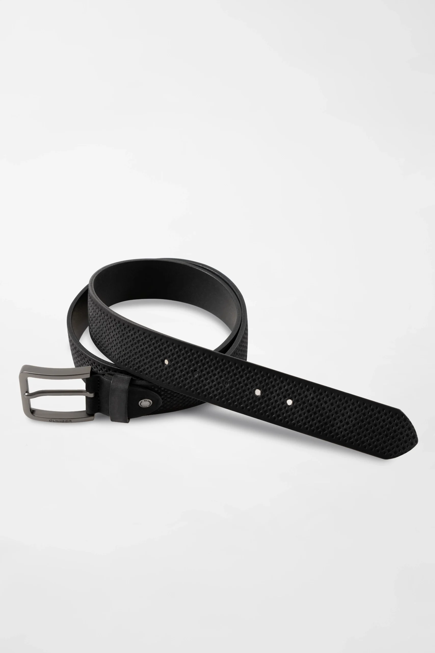 Этот современный узорчатый черный ремень – идеальный вариант для тех, кто хочет привнести в свой повседневный стиль другую атмосферу.nБлагодаря тщательно проработанной узорчатой поверхности и матовой металлической пряжке этот ремень привлекает внимание, объединяя элегантность и комфорт.nЭтот аксессуар, который можно использовать как в формальных сочетаниях, так и в повседневной одежде, долговечен благодаря качественному кожаному материалу.nЭтот ремень, который обязательно должен быть в Вашем гардеробе, – самый простой способ завершить Ваш стиль! Варианты длины: 90 см, 95 см, 100 см, 105 см, 110 см, 120 см Использование: На рабочем месте, для особых приглашений, для повседневного использования Комфорт: Максимальный комфорт благодаря регулируемой конструкции отверстий