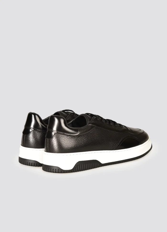 This black leather sneaker shoe, which will complete your daily elegance, will allow you to attract attention in every environment. Standing out with its high-quality leather material and modern design, this shoe offers both comfort and style.