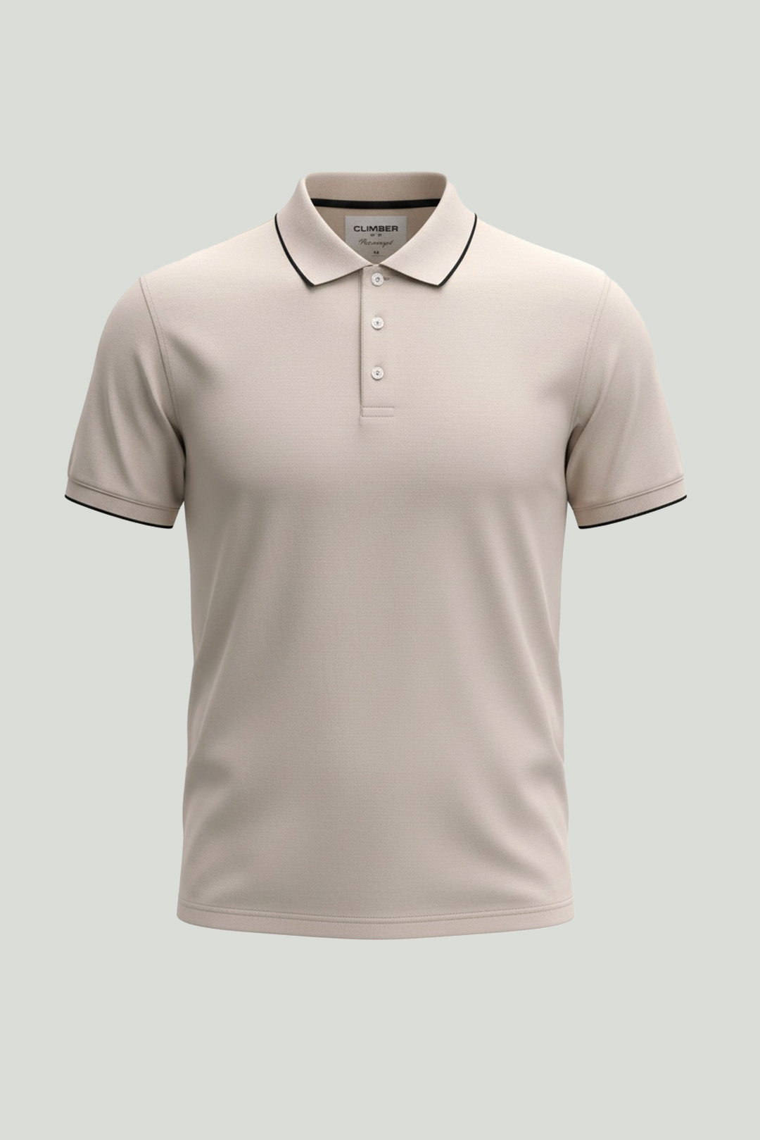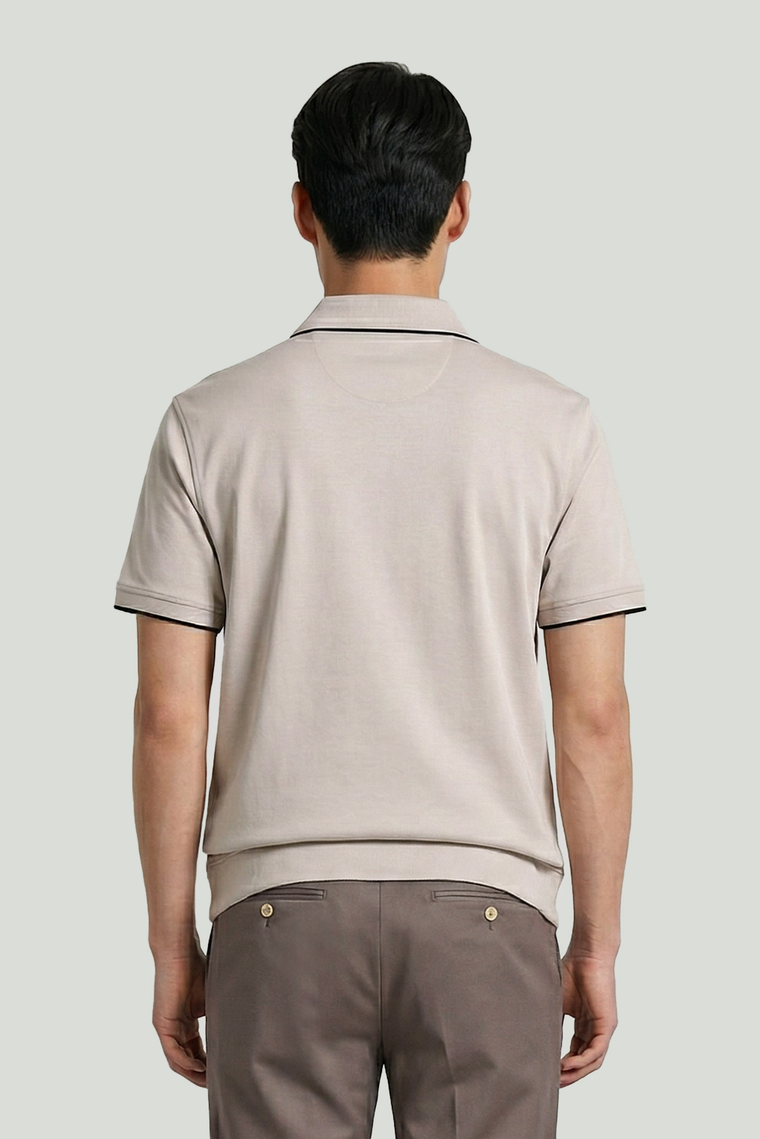 Crafted from mercerized cotton yarns, this polo shirt offers a clean and refined look with its smooth surface and subtle natural sheen. The mercerization process enhances the durability of the fabric while helping it maintain its shape over time. Its balanced fit creates a neat silhouette on the body, while the fine contrast details on the collar and sleeve edges add a subtle and elegant character to the design.