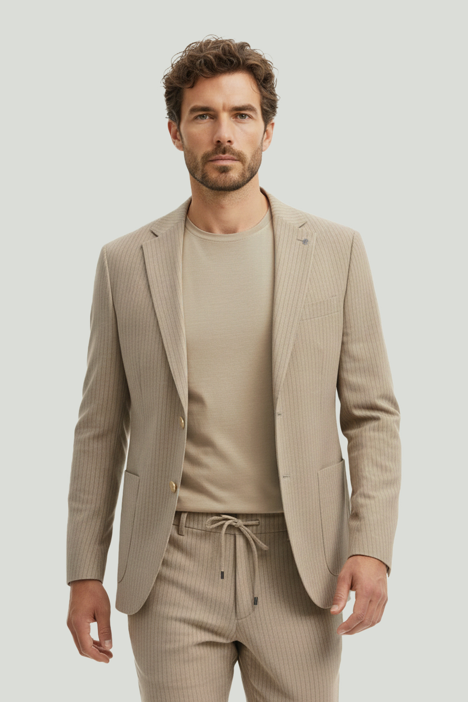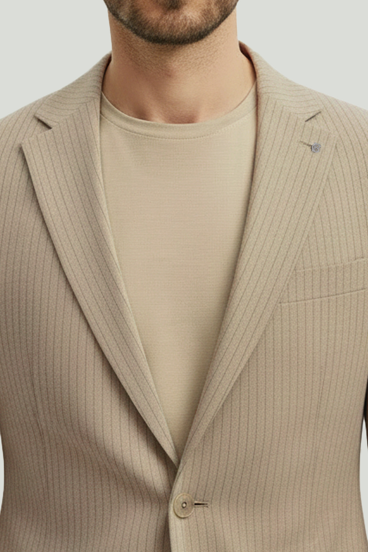 Offering all-day comfort with its fine striped texture and lightweight construction, this jacket sits on the body in a balanced way to create a modern and clean silhouette. The understated elegance of its natural beige tone makes it a strong complement for both everyday and more refined combinations.