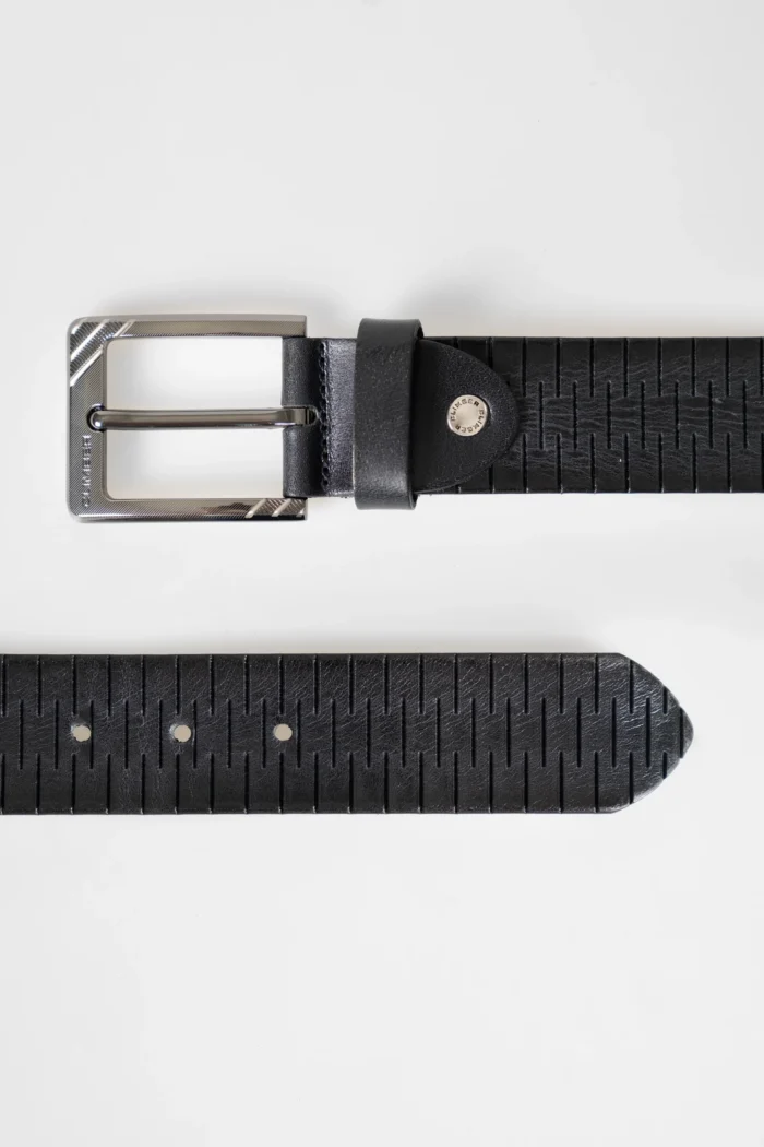 This black textured leather belt, where elegance and quality meet, offers a perfect combination of classic and modern style. Made of high-quality leather, this belt is ideal for many years of use with its durable structure. Its textured surface adds a unique character to the belt, while its simple and elegant design easily adapts to any outfit combination.