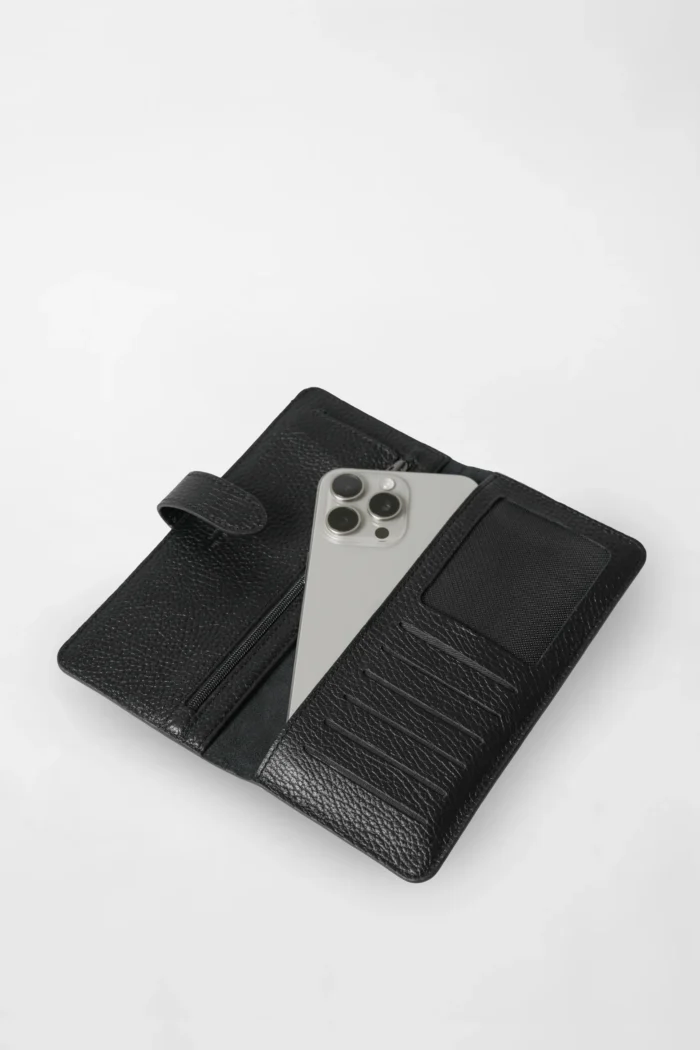 The interior of the wallet is equipped with compartments that will allow you to store your cards, cash and important documents in an orderly manner. In addition, the wallet’s wrist strap provides extra security and comfort to the user by providing ease of carrying. The zippered closure of the wallet allows you to keep your belongings safe.