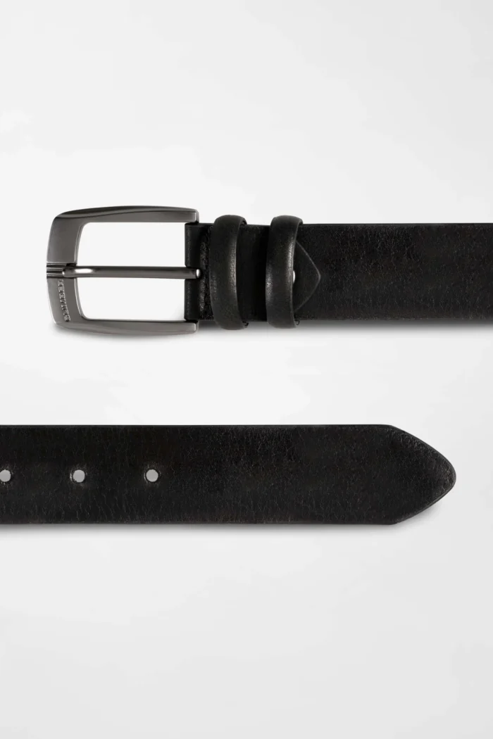 This classic black leather belt is a stylish and versatile accessory that every man should have in his wardrobe. It offers long-lasting use with its high-quality leather, while its simple yet modern metal buckle adds a sophisticated touch to your style. This belt, which you can easily wear both in business life and in everyday wear, perfectly completes every combination with its timeless elegance.