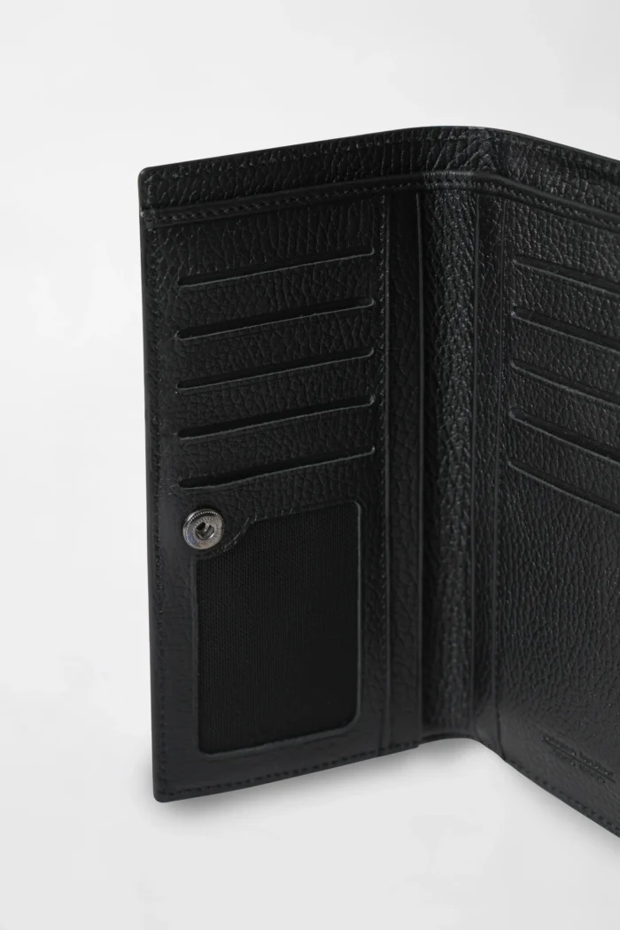 The interior of the wallet is equipped with compartments that will allow you to store your cards, cash and important documents in an orderly manner. In addition, the wallet’s wrist strap provides extra security and comfort to the user by providing ease of carrying. The zippered closure of the wallet allows you to keep your belongings safe.