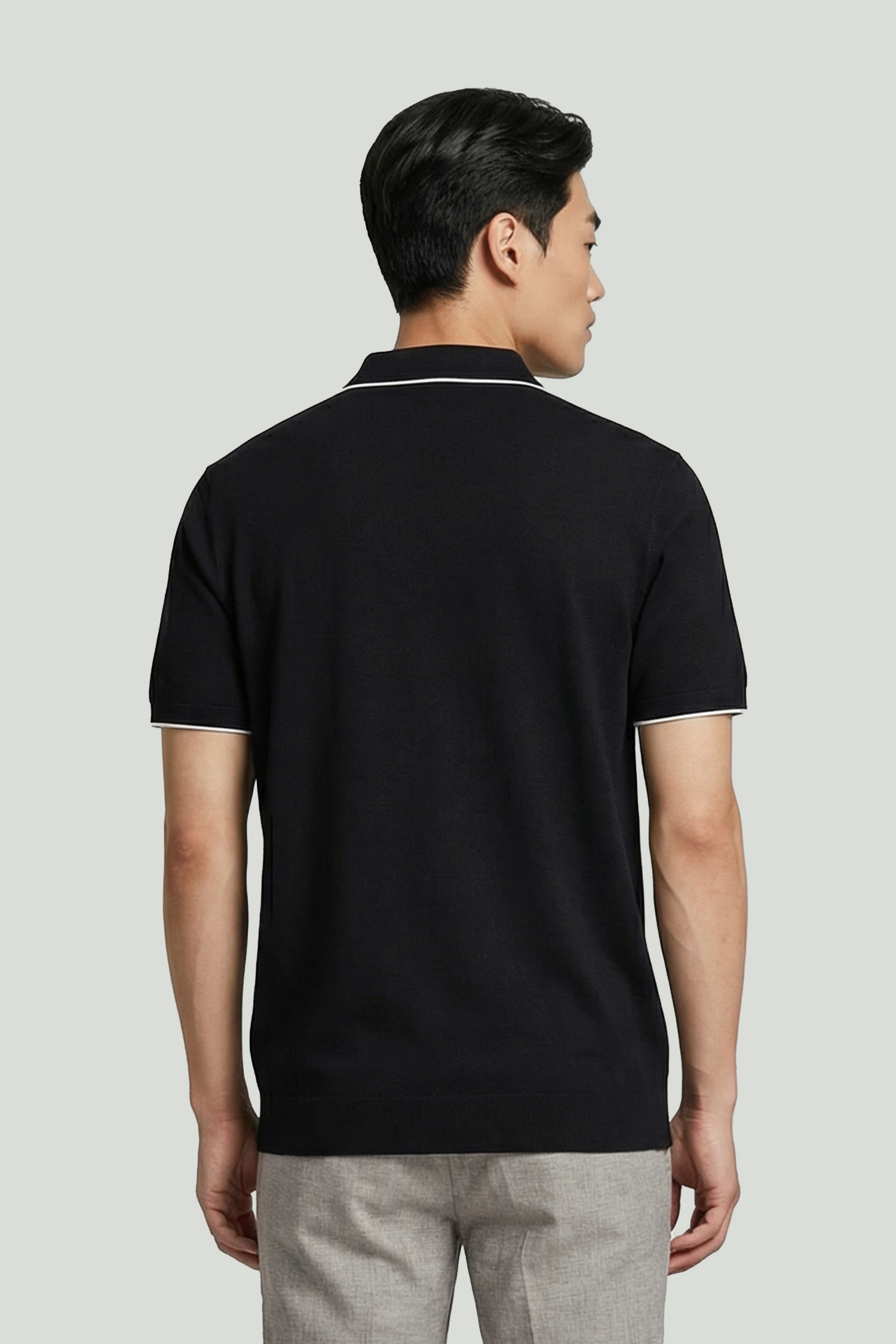 Crafted from a rayon-blend fabric, this polo T-shirt offers a comfortable wearing experience with its soft texture and fluid surface. The smooth structure of the fabric gives the piece a clean and refined appearance, while the modern cut creates a balanced silhouette on the body. Contrast stripe details on the collar and sleeve edges add a dynamic touch to the design.