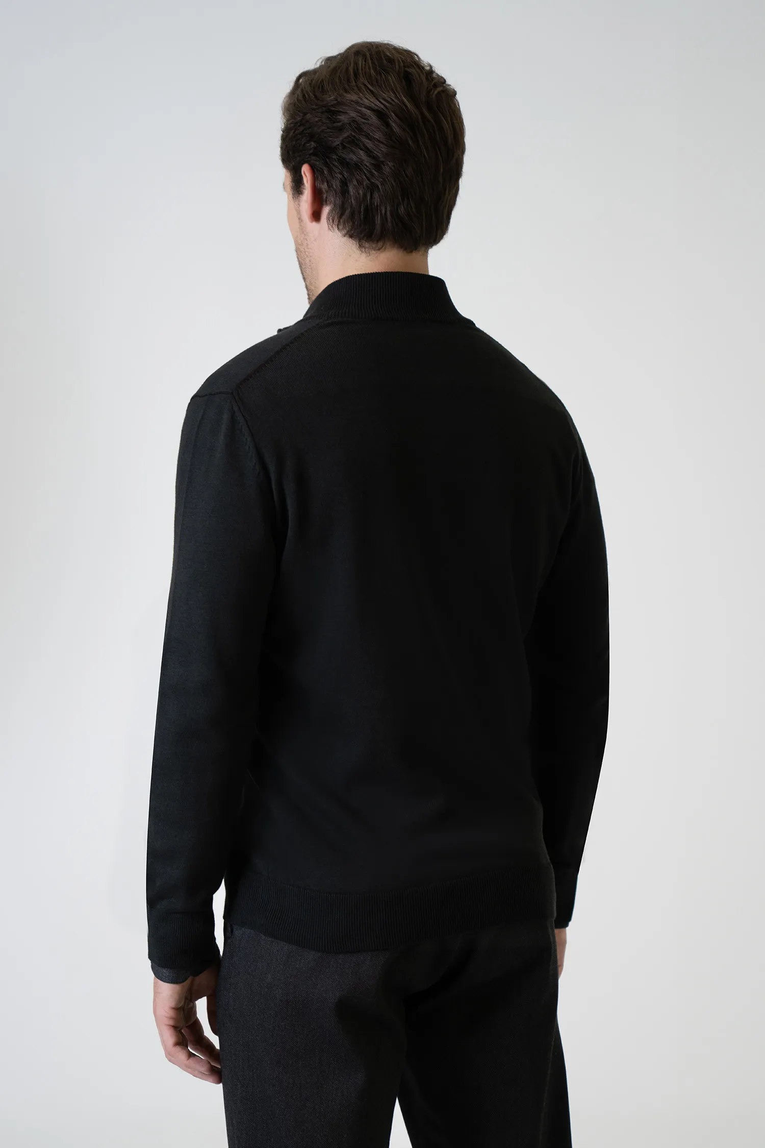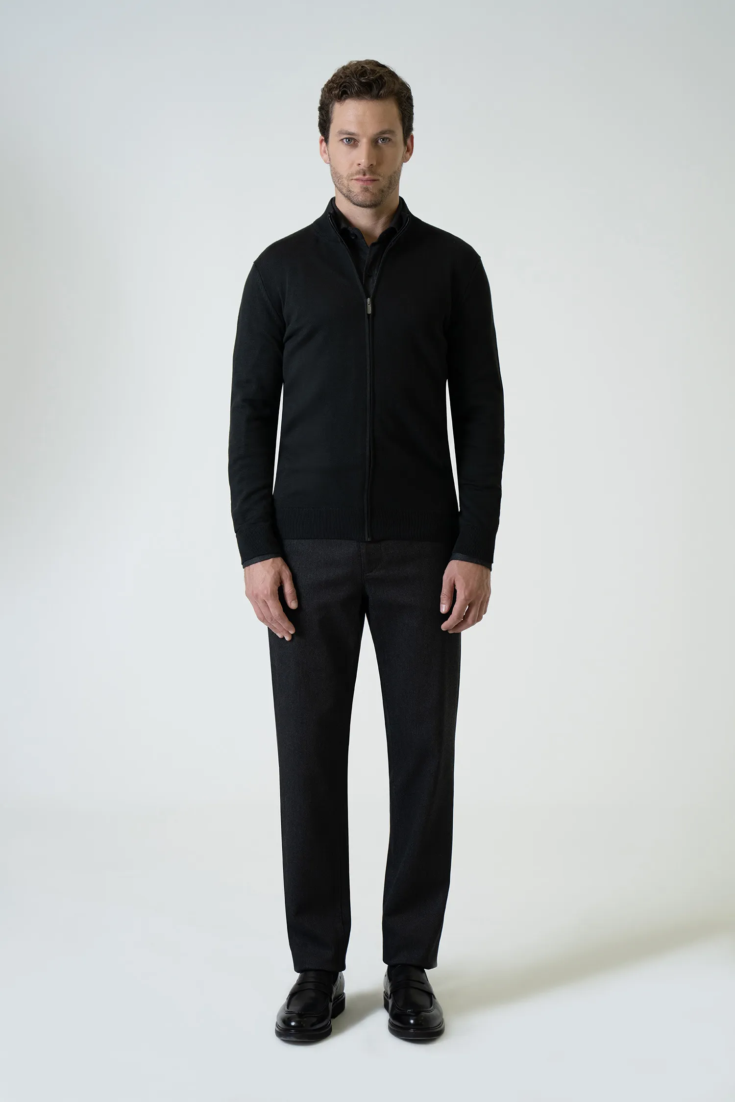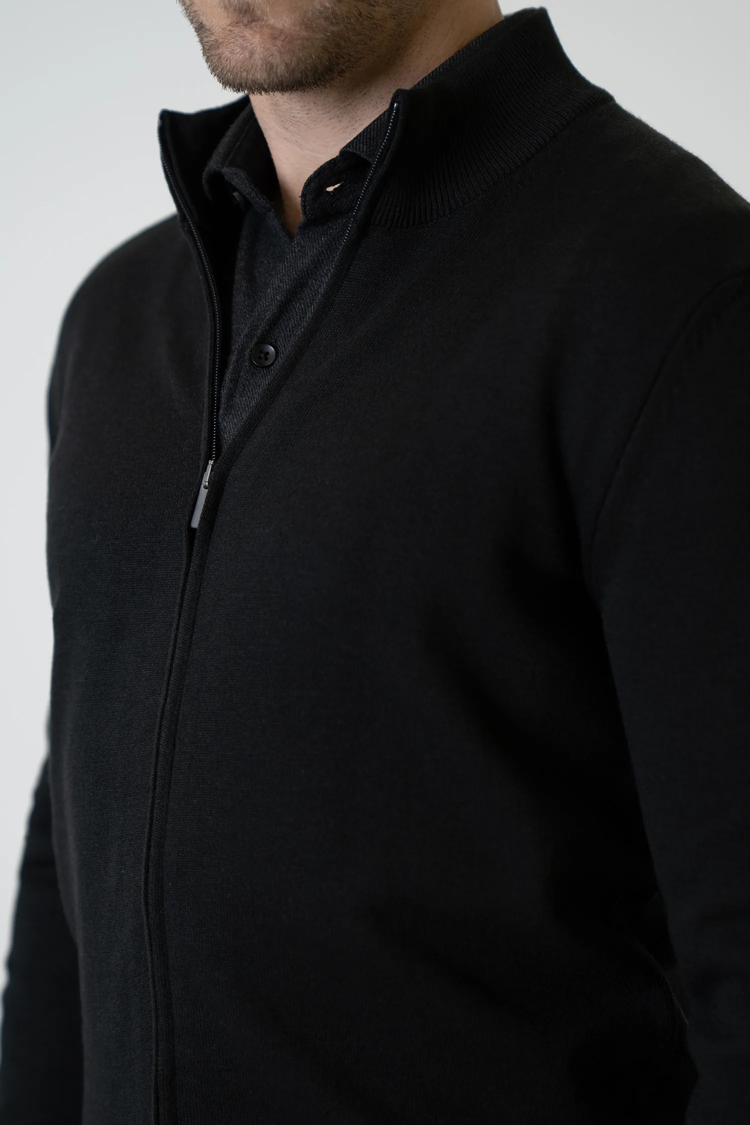 With its timeless black tone that pairs effortlessly with any outfit, this full-zip lightweight knit cardigan is one of the strongest essentials for both everyday and smart-casual style. Its clean design, lightweight texture, and modern lines offer a refined and versatile finishing touch.