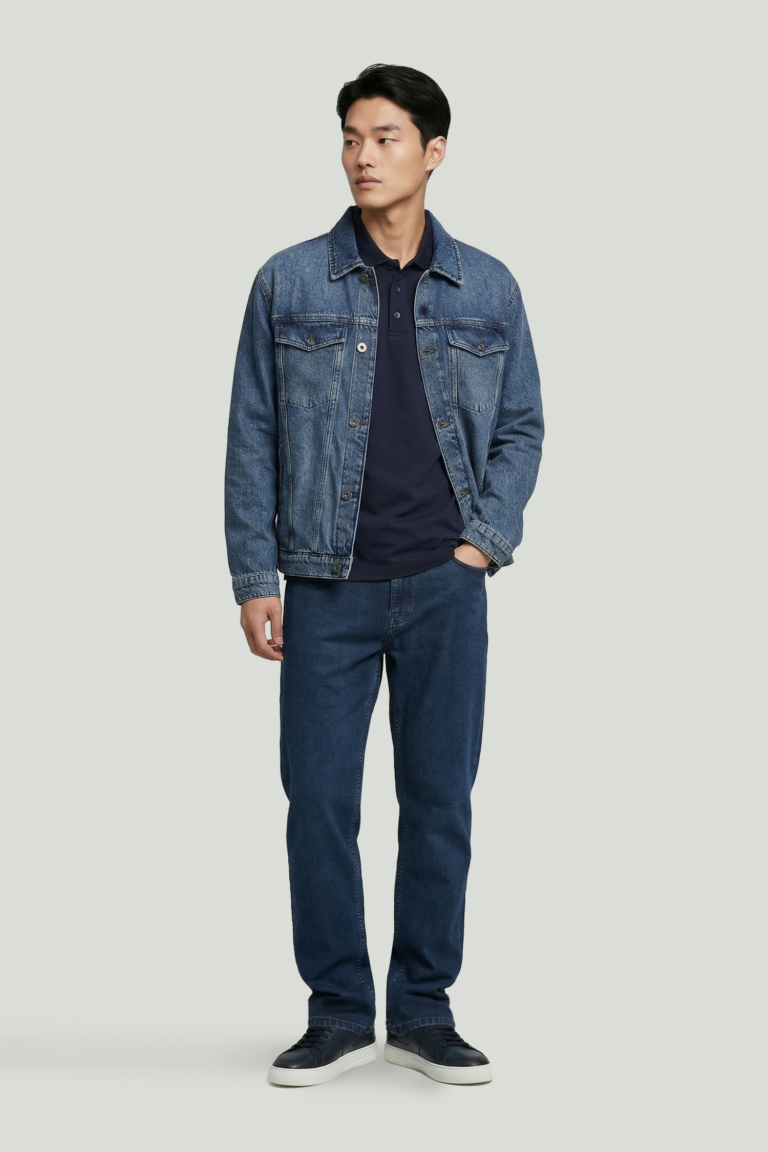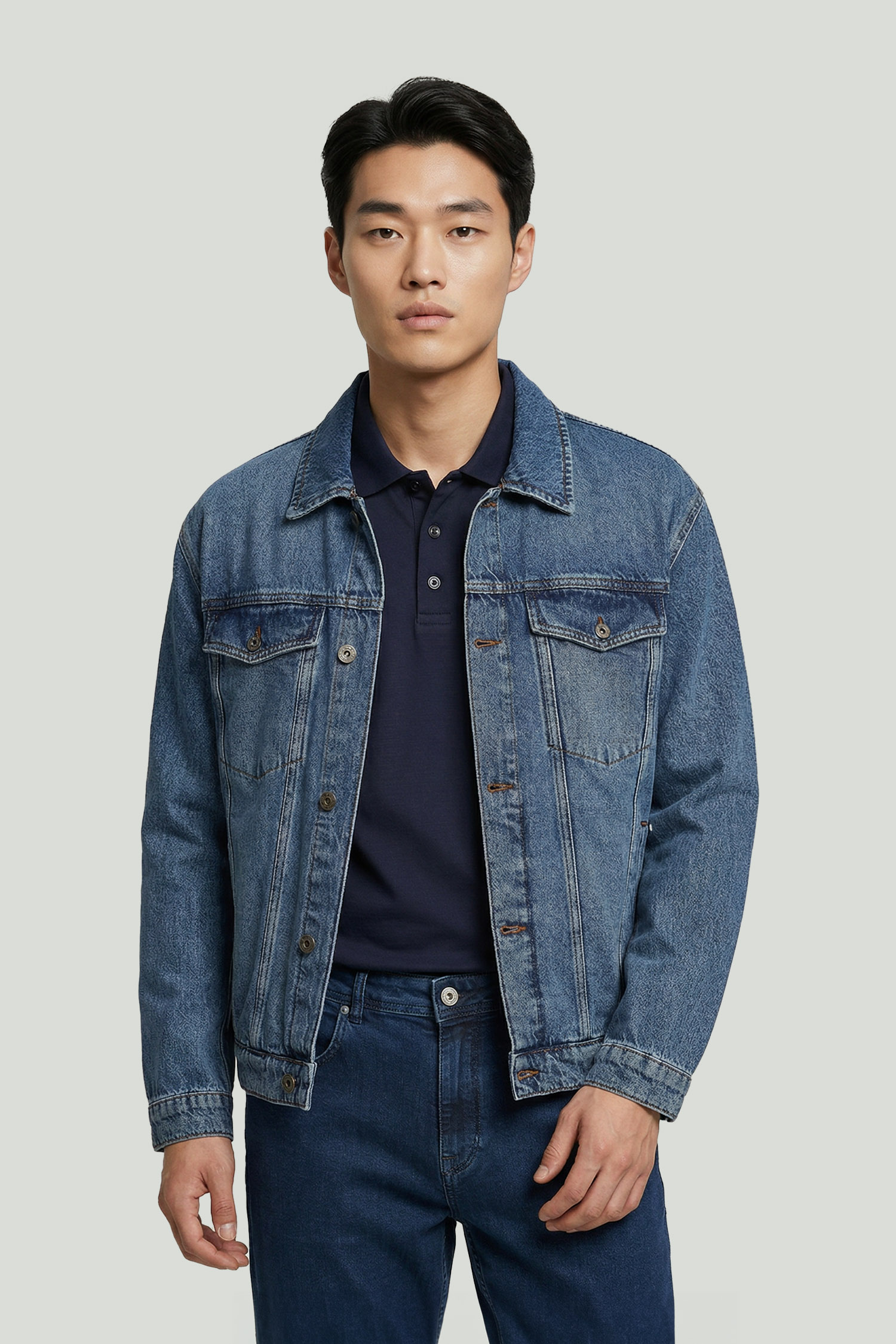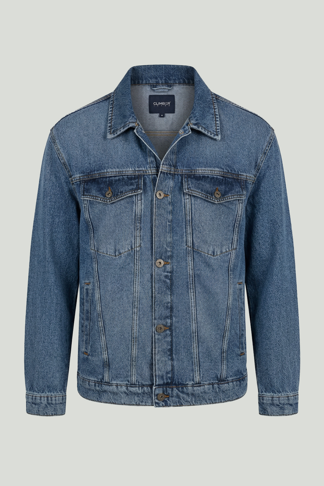 Reflecting the timeless character of classic jean style, this blue denim jacket offers a modern look with its naturally washed surface and strong structure. Its balanced cut and iconic denim details make it a strong complementary piece that can be easily worn in both everyday outfits and urban style.