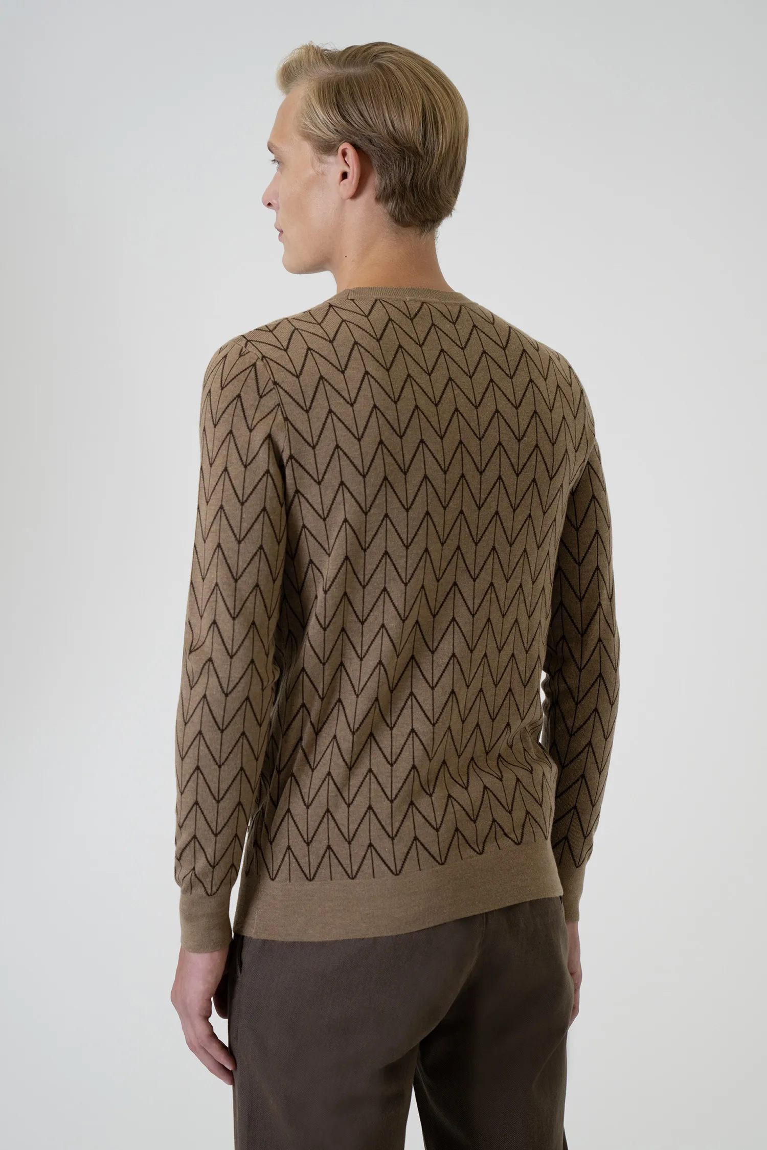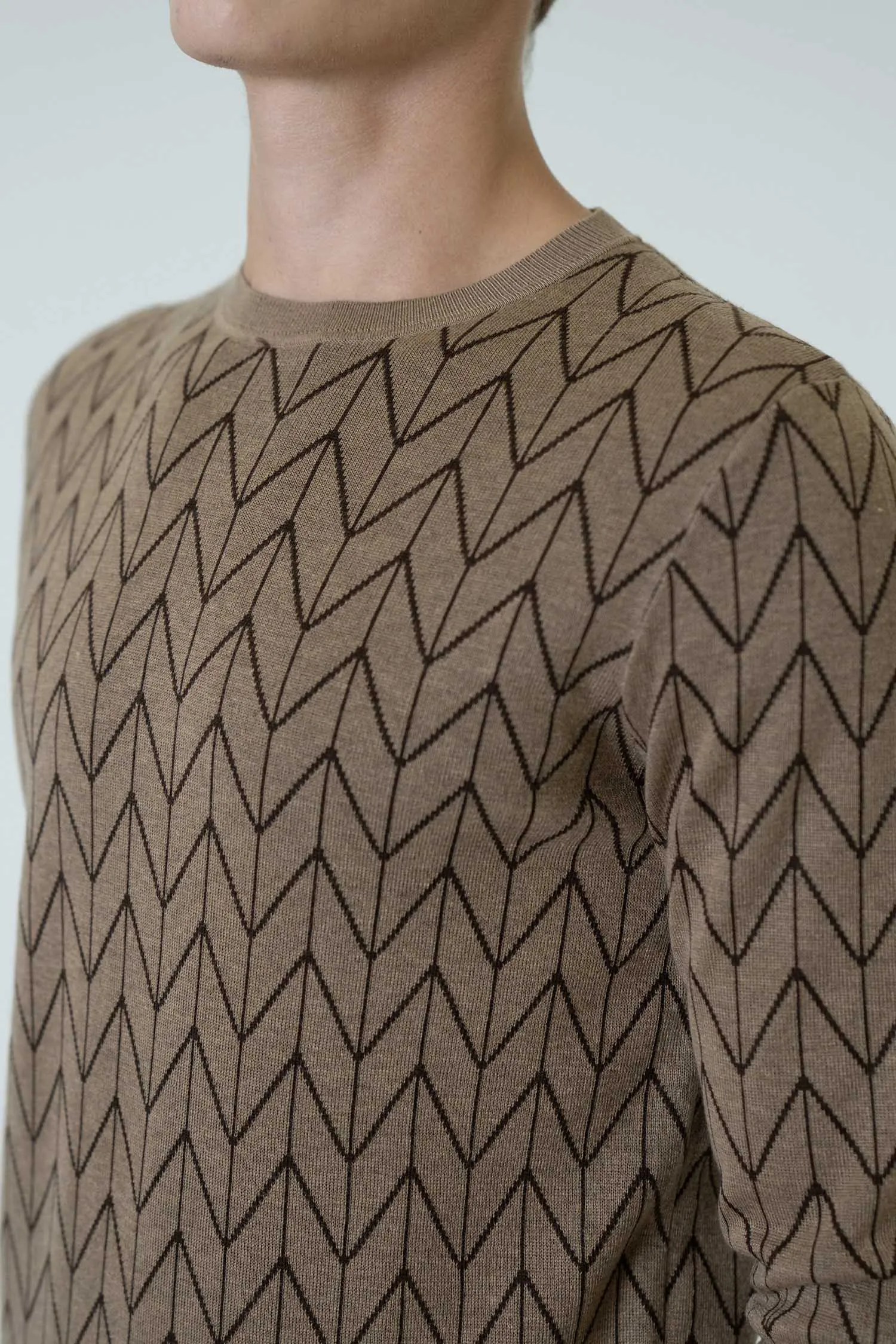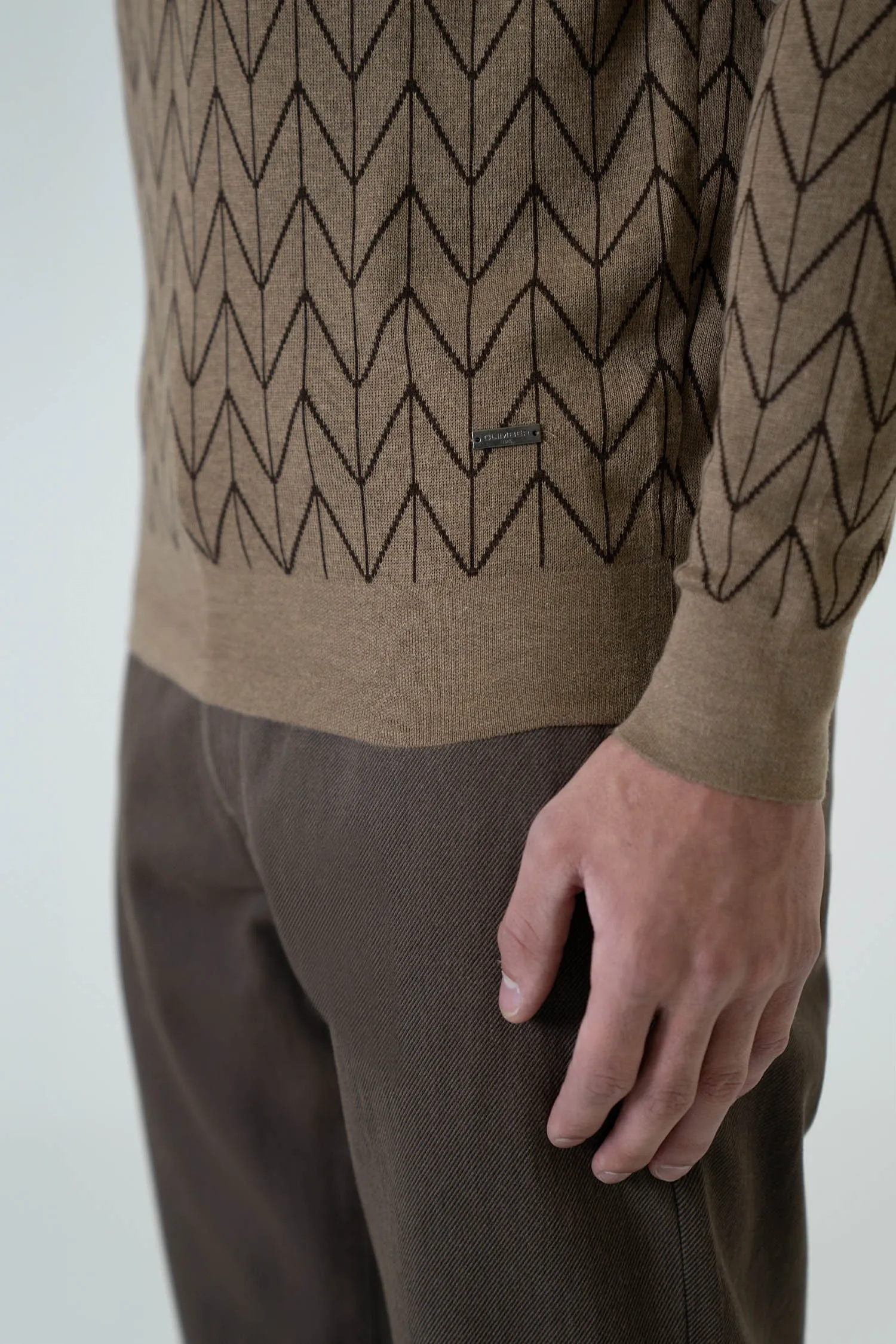 Geometric lines crafted on a brown base give this fine knit sweater a modern and refined look. With its soft texture and lightweight structure, it offers a stylish and comfortable option both for city style and smart-casual combinations.