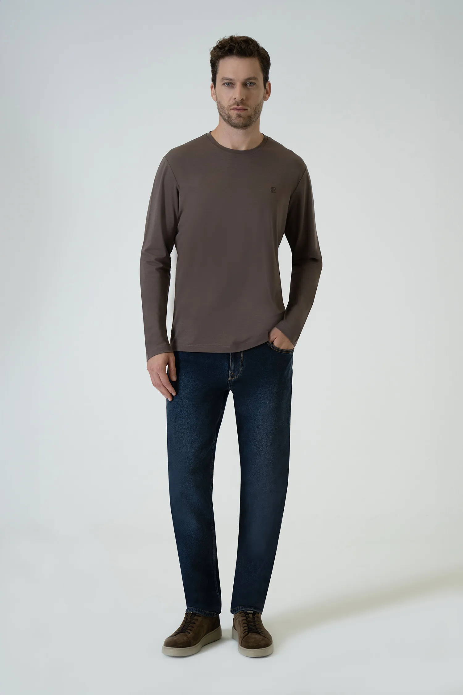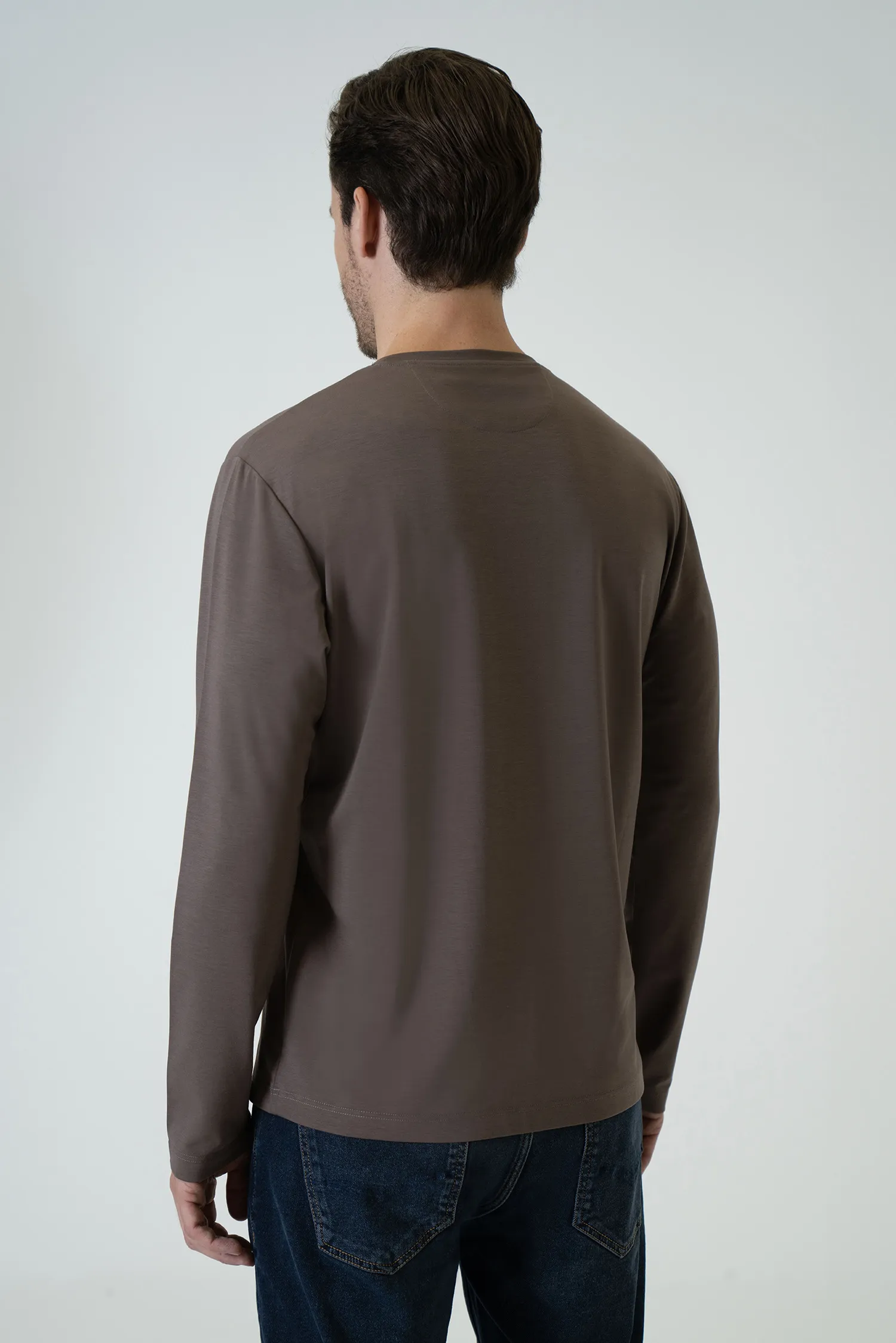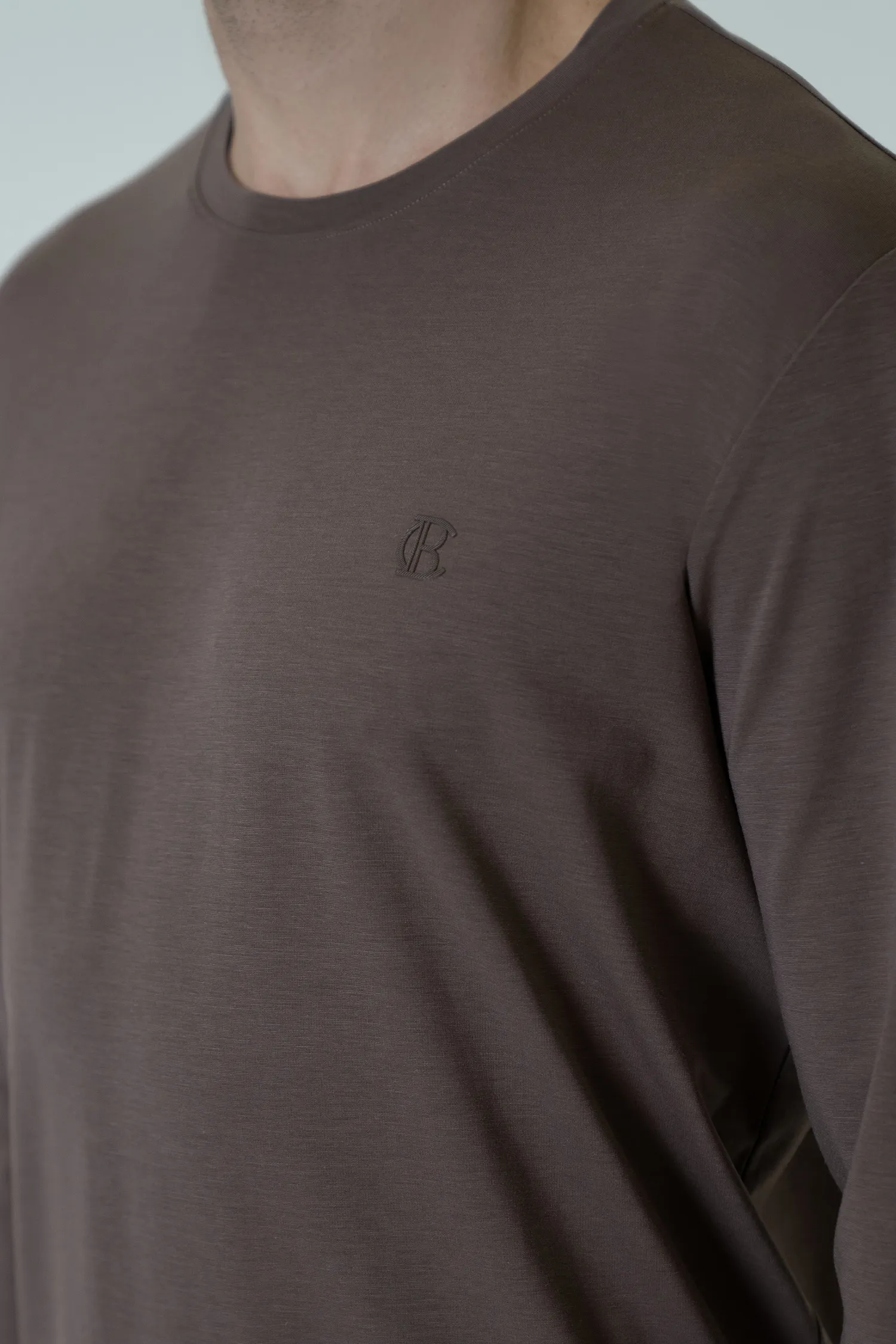 Combining clean lines with a modern color tone, this brown sweatshirt stands out as one of the most timeless pieces of everyday style thanks to its soft texture and minimalist design. The chest logo detail adds a refined and sophisticated touch to the garment.