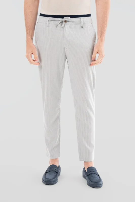 With their modern lines and relaxed fit, these trousers add a sophisticated touch to both everyday and office style. The soft-textured fabric ensures all-day comfort, while the drawstring waist detail provides practical ease. Thanks to their minimal design, they can be effortlessly paired with jackets and shirts for a refined look.