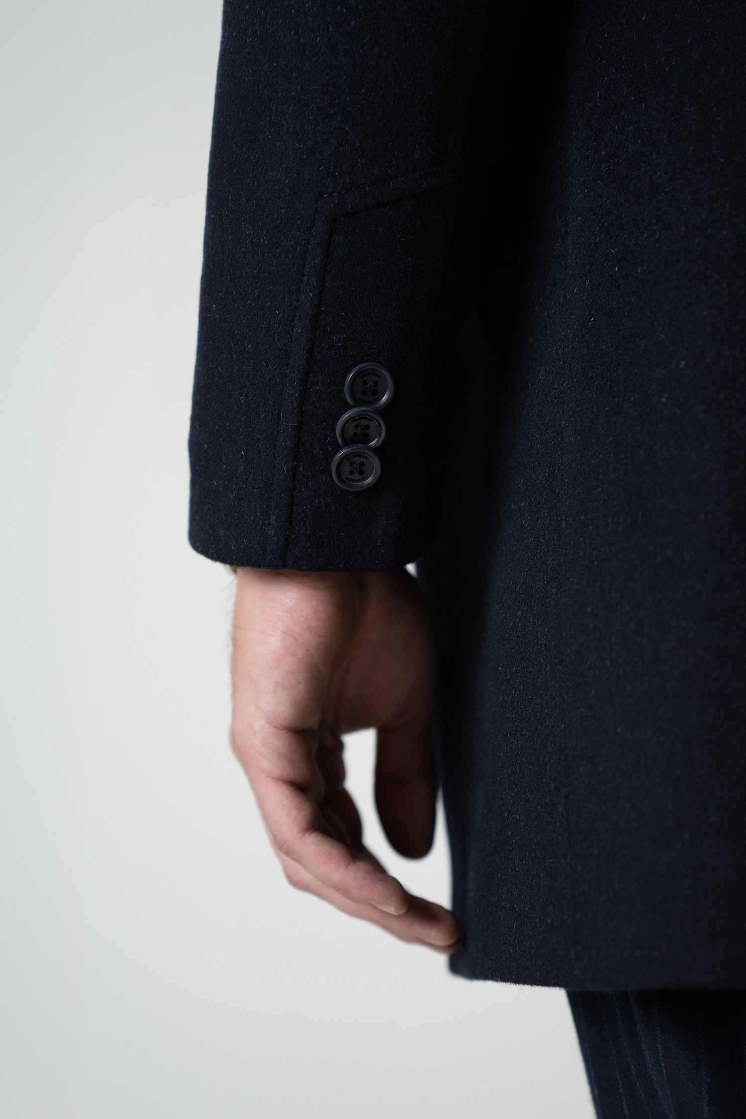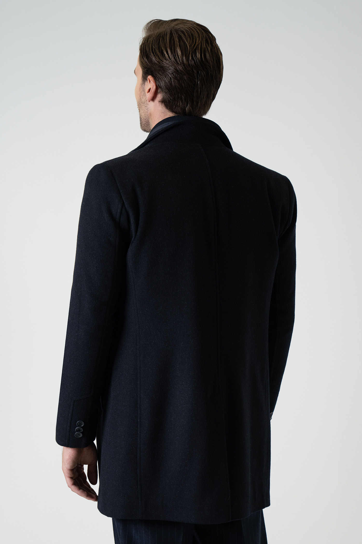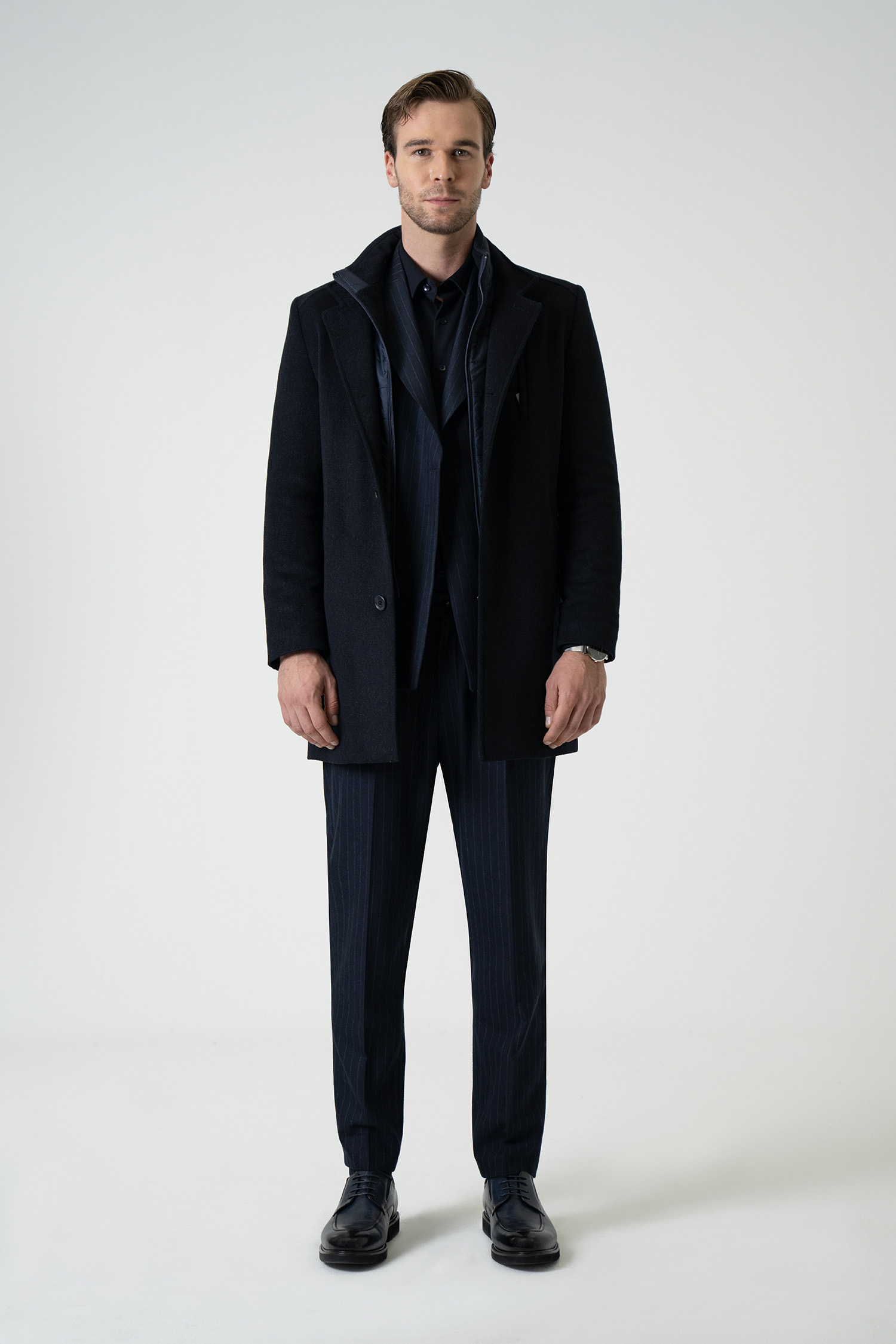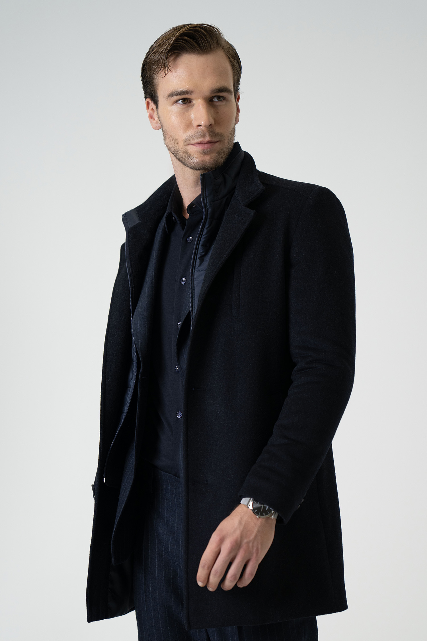 Blending timeless elegance with modern details, this dark navy coat is an ideal choice for those seeking a stylish look in cold weather. Its modern fit cut provides a refined silhouette, while the high-quality fabric ensures warmth and comfort. With its minimalist design, it offers versatile use from business attire to everyday outfits.
