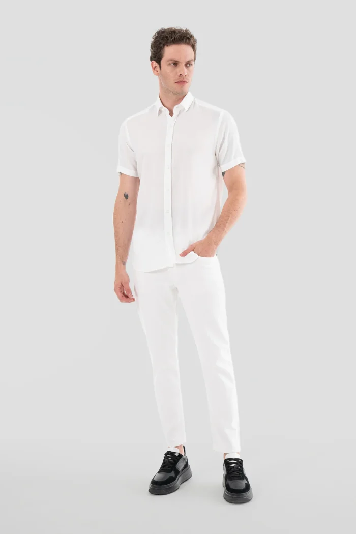 Meet the white denim trousers that will highlight your style and become an indispensable part of your wardrobe! Drawing attention with its high-quality fabric and modern cut, these trousers are an ideal choice for both daily use and special moments.These white denim trousers are a versatile piece that you can wear both in everyday life and for special events. You can create a comfortable and stylish everyday combination with sneakers, or you can achieve a more formal look with classic shoes.