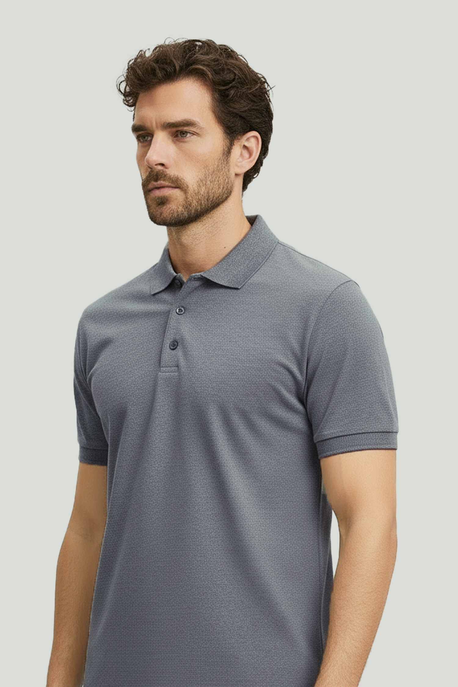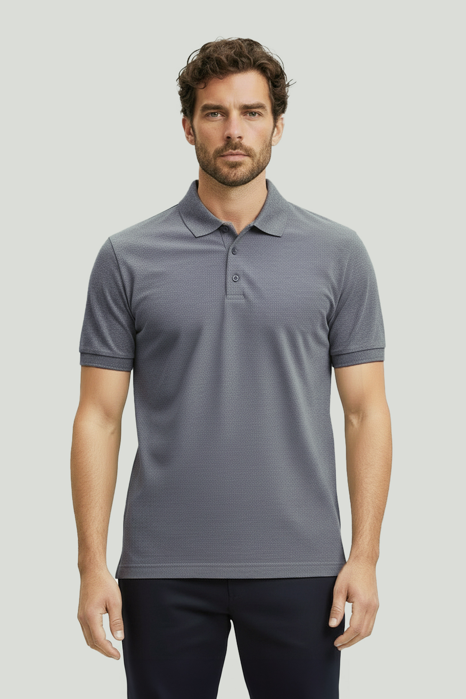 Designed with minimal lines, this grey polo shirt offers timeless versatility for both everyday and smart casual combinations thanks to its balanced fit and clean surface texture. The polo collar adds a neat and modern appearance, while the short-sleeve design ensures ease of movement.