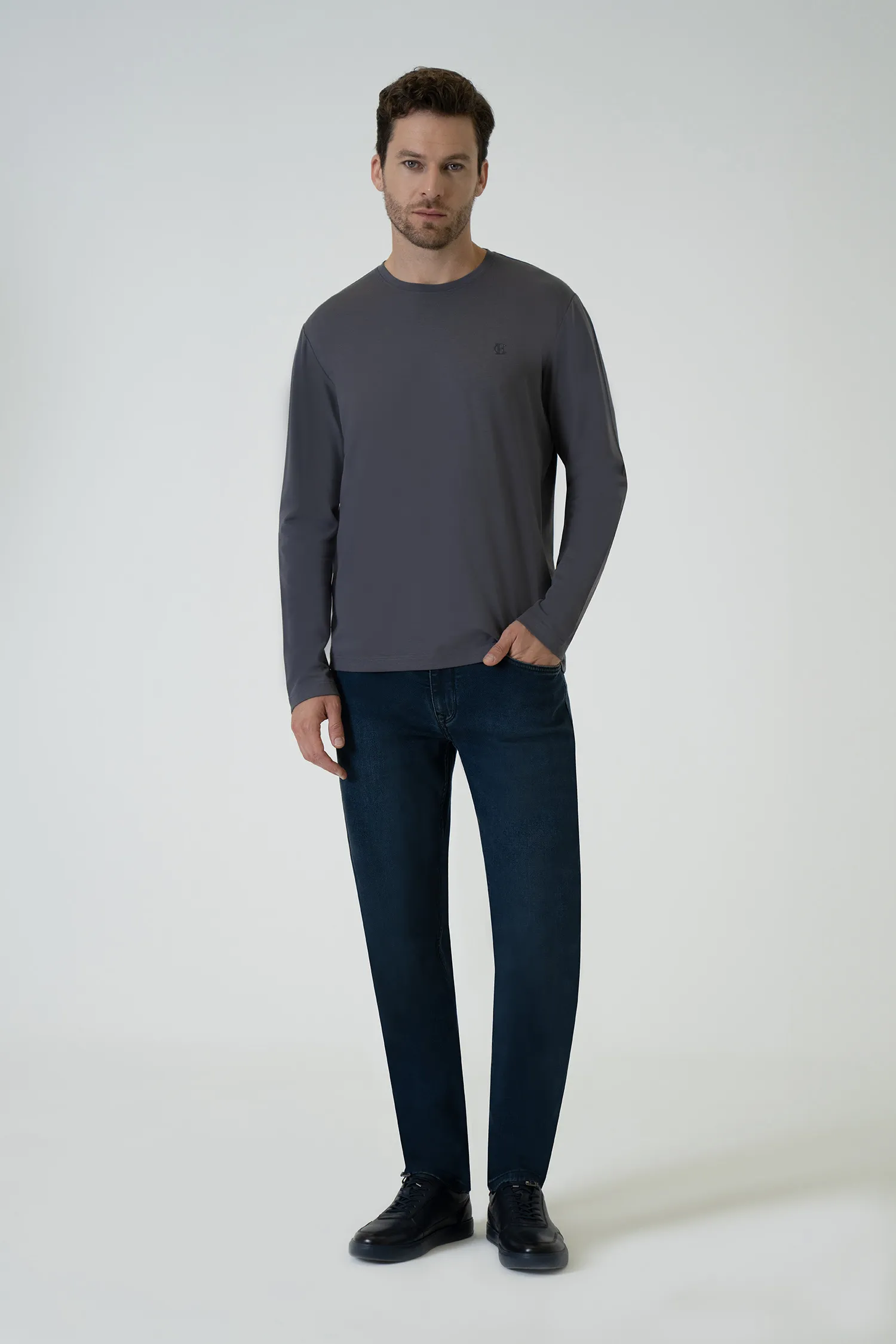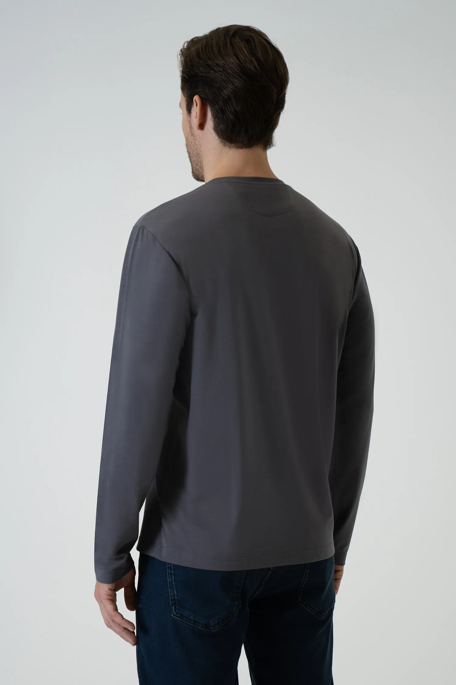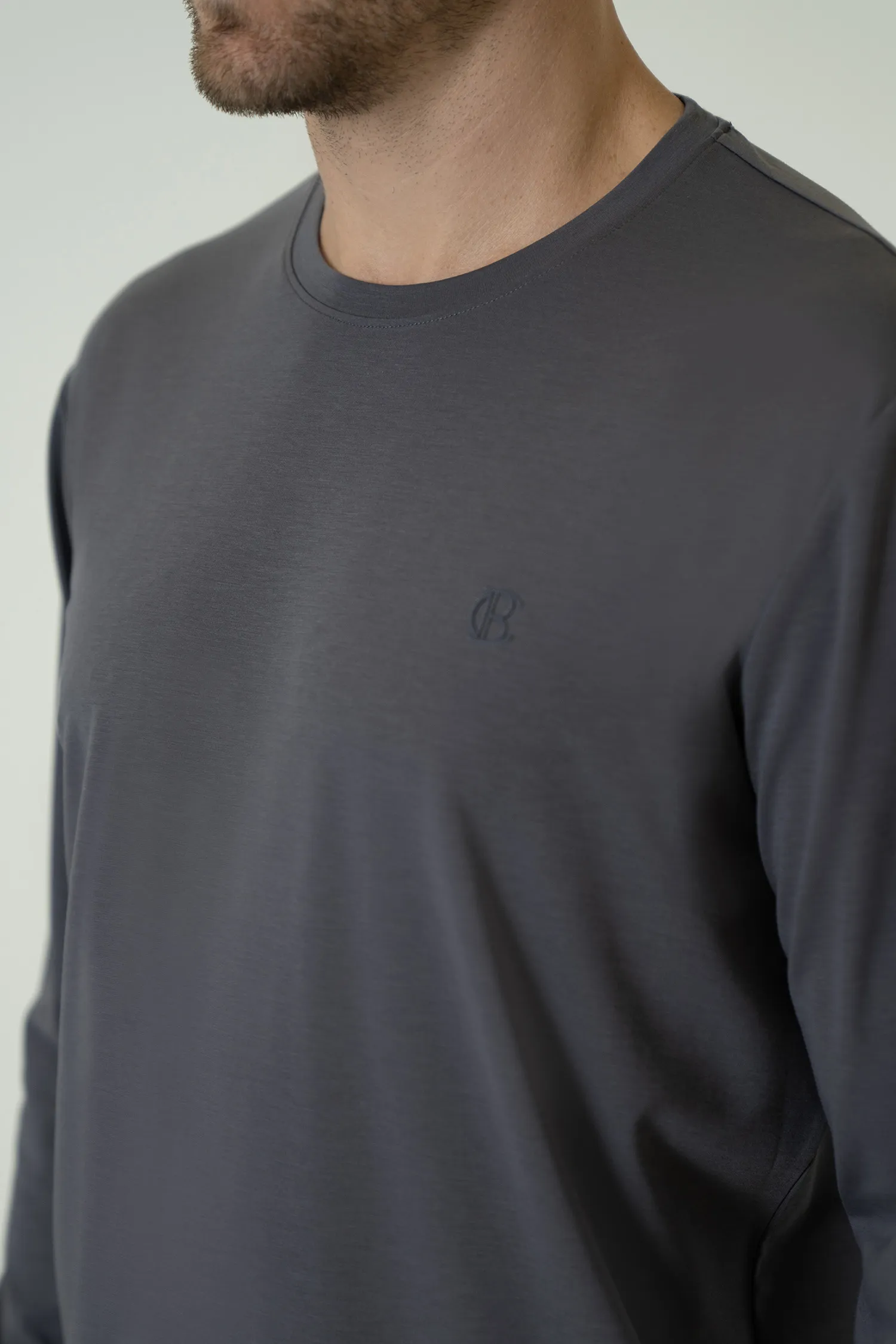 With its soft texture, clean lines, and modern grey tone, this long-sleeve sweatshirt adds a minimal yet stylish touch to your daily look. Its lightly elastic structure allows freedom of movement, while the subtle logo on the chest gives the design a refined and sporty character.