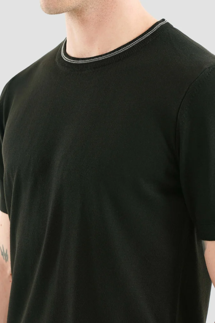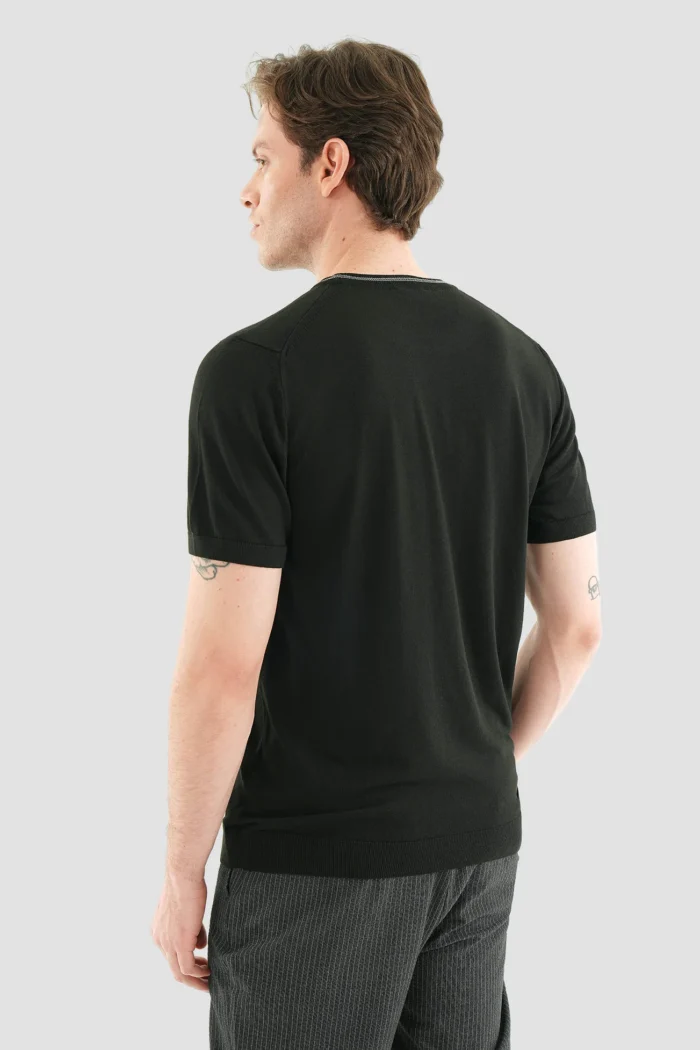 This black crew neck t-shirt can be worn with a variety of combinations, from jeans to sleek trousers. It can be easily combined with both sneakers and classic shoes, making it one of the most versatile pieces in your wardrobe.
