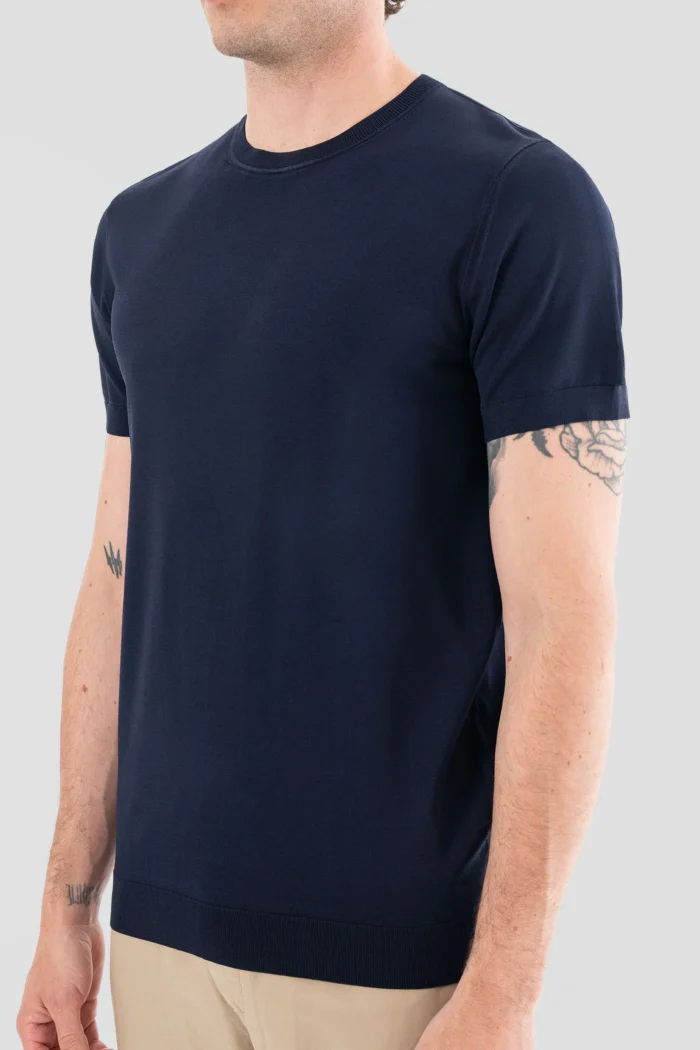 Navy Blue Crew Neck Knitwear With Short Sleeves