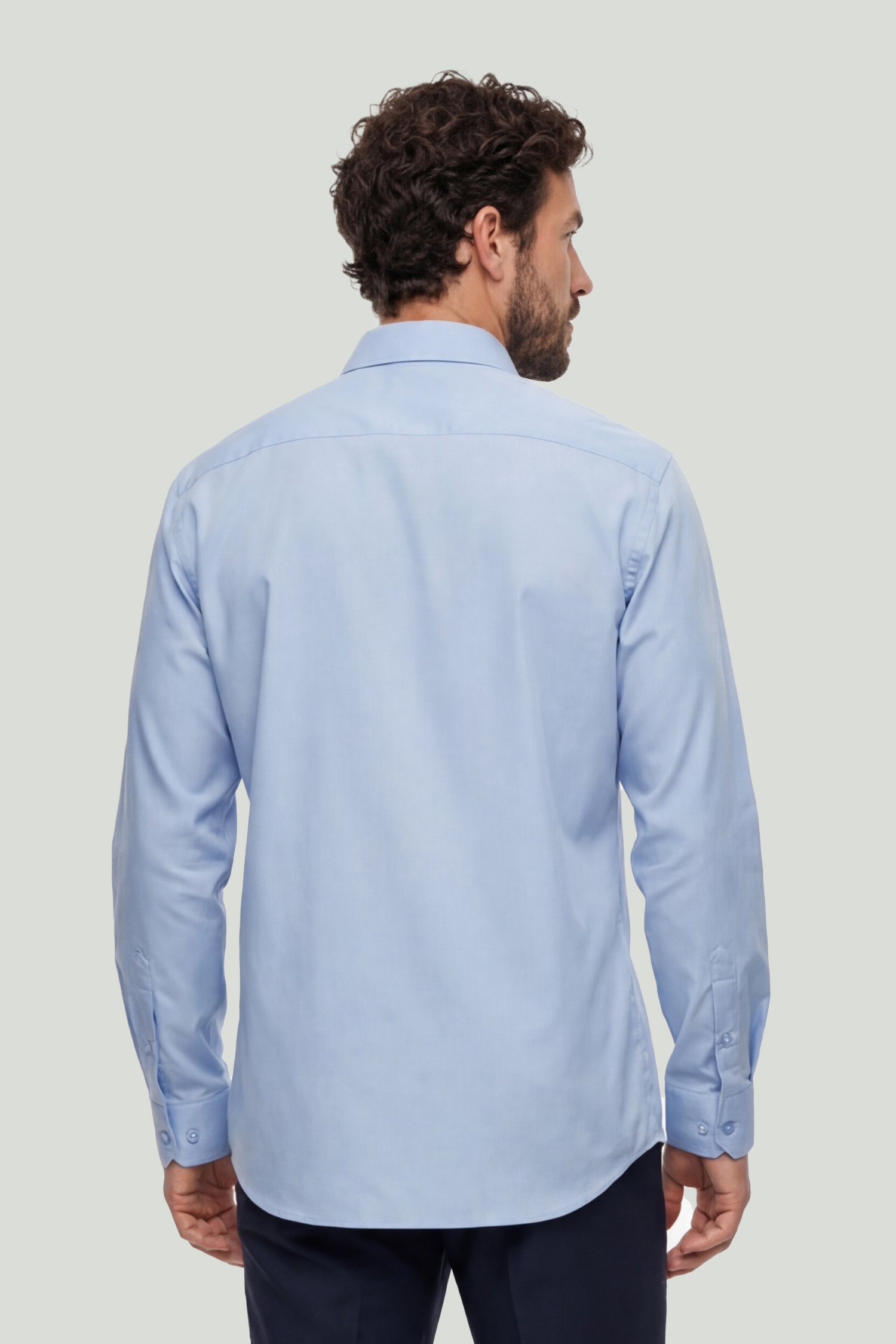 With its fresh light blue tone and bamboo blend construction, this shirt offers lightweight comfort throughout the day. Its fluid texture and clean form create a modern, refined, and timeless style.