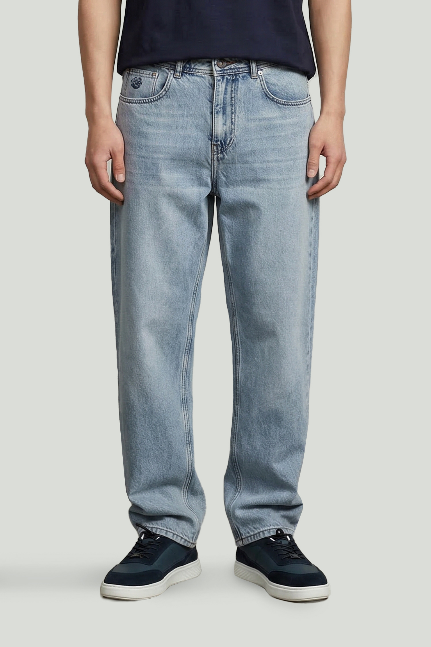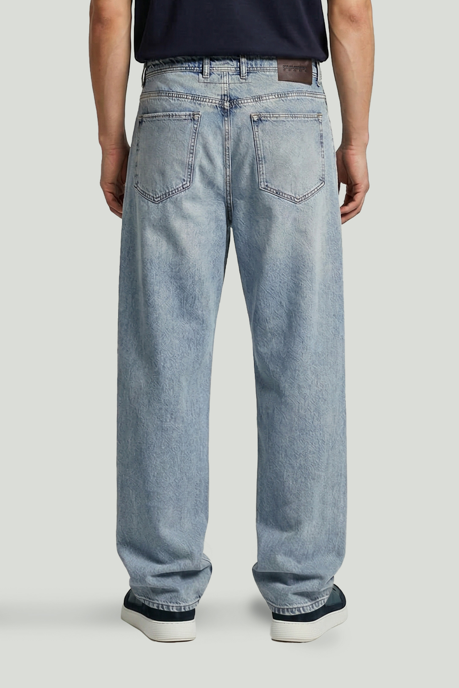 Offering a relaxed and free silhouette, these jeans reflect modern denim character with their light blue washed surface. The Over Fit cut features a loose, draped structure that sits away from the body, creating a comfortable and confident style.