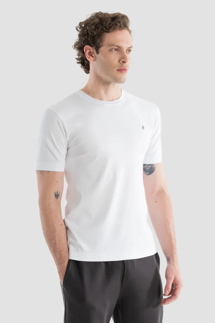 This classic white t-shirt in the image is an essential piece for every man’s wardrobe. With its simple and minimal design, you can easily use it in both your sports and casual combinations. It offers comfort all day long thanks to its soft and breathable fabric. While its lightweight structure helps you stay cool on hot days, it is a perfect basic piece for layered combinations in cold weather. With its modern cut and elegant stance, this t-shirt will complete your elegance in every environment and will be an indispensable part of your style.