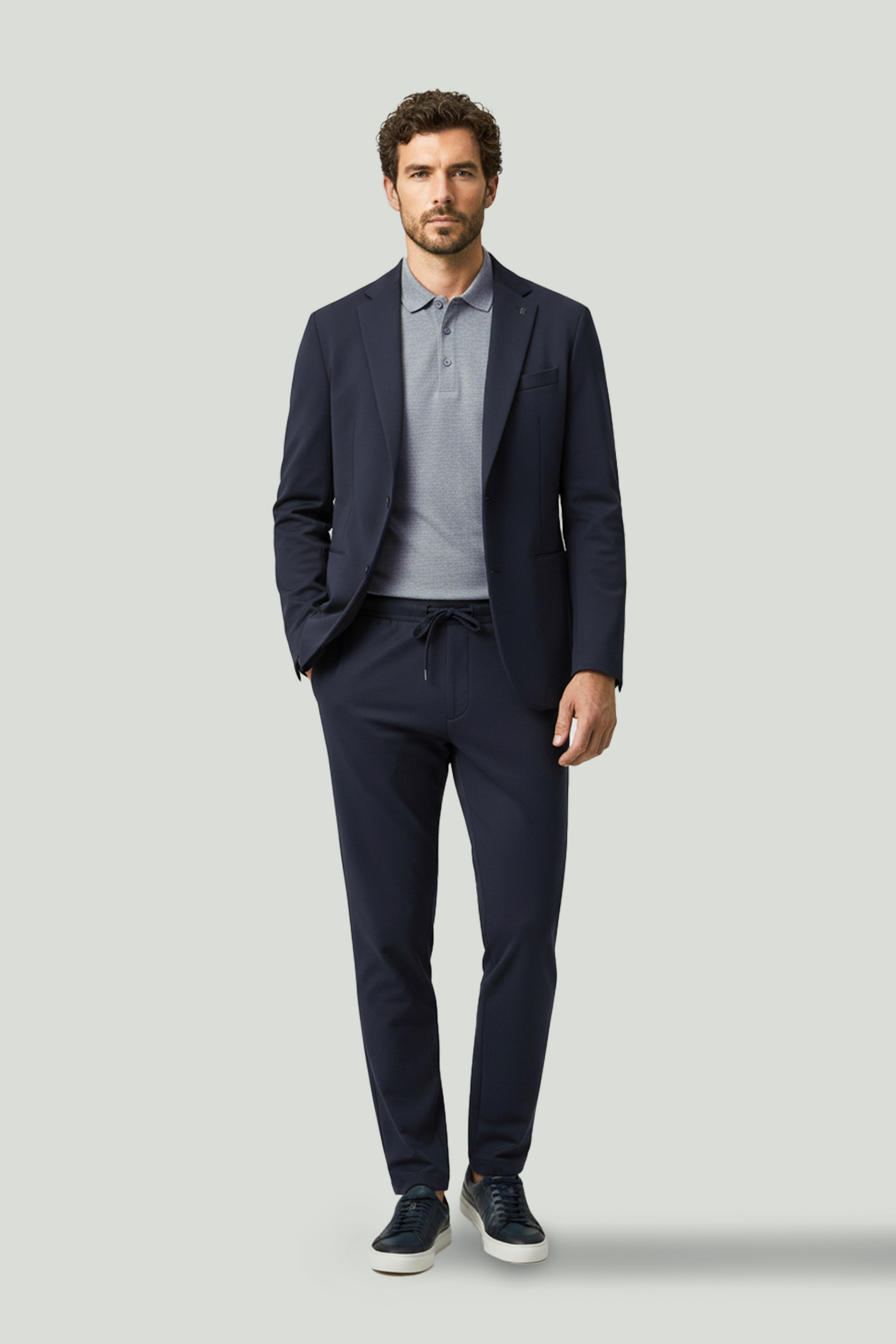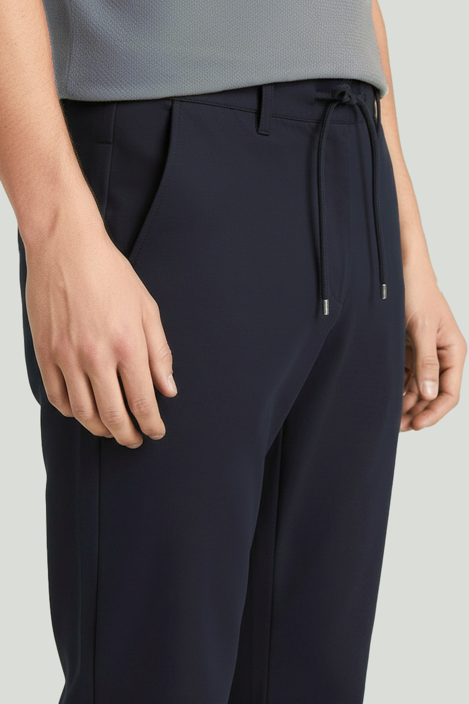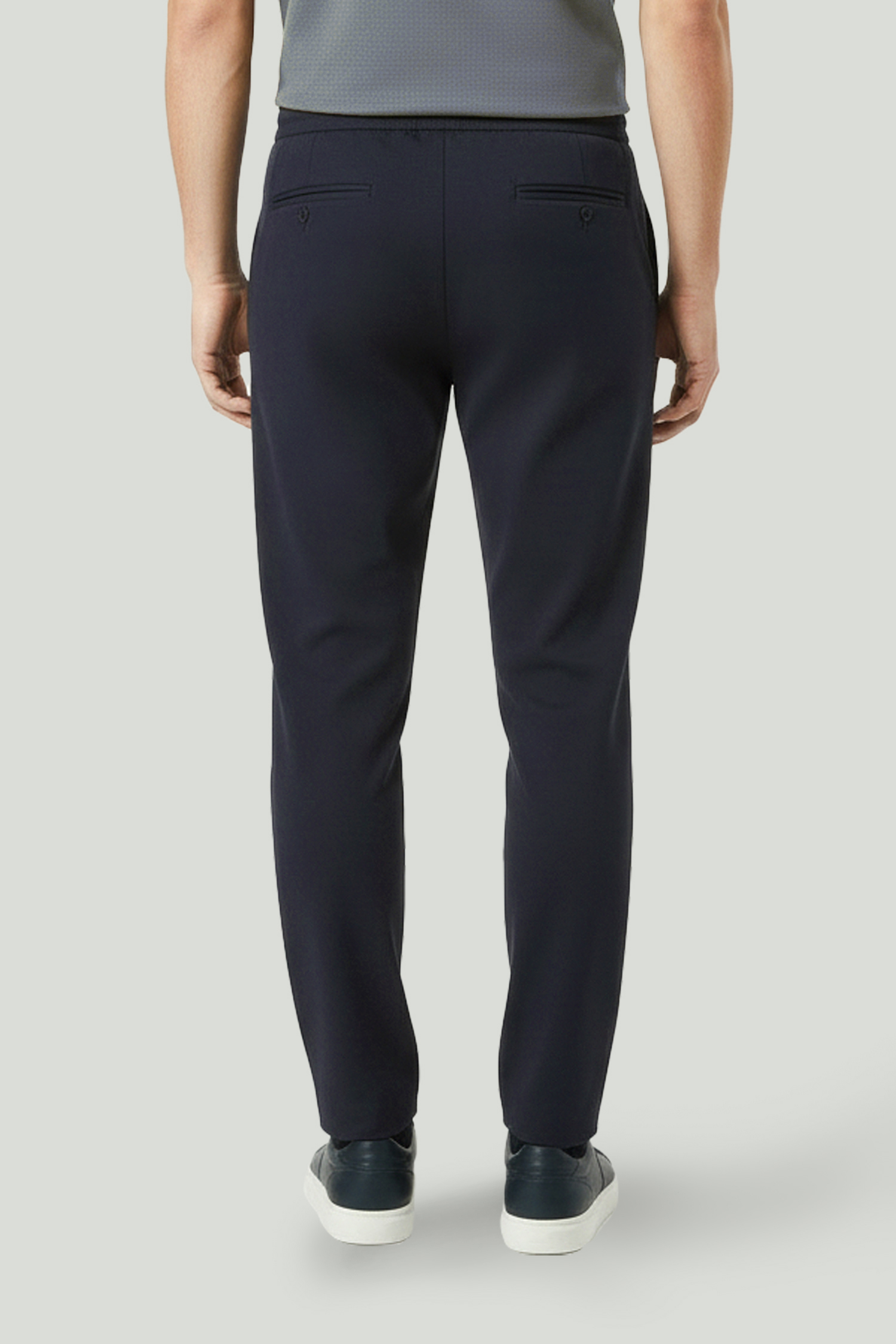 Designed with a clean form and balanced fit, these navy trousers offer a sharp look for both everyday and smart casual combinations. The plain surface texture and fluid construction create a neat and well-structured appearance on the body. The drawstring waist detail enhances comfort, while the lightweight and flexible fabric ensures ease of wear throughout the day. Easily paired with a polo T-shirt or a blazer.
