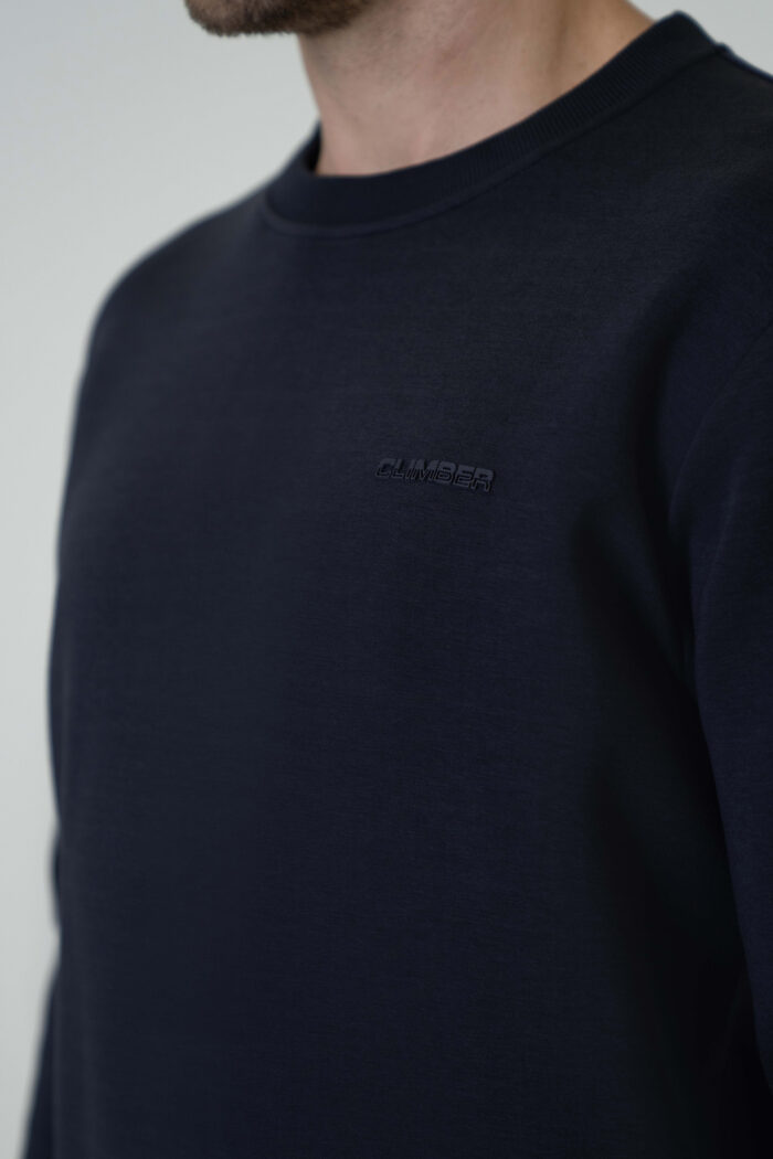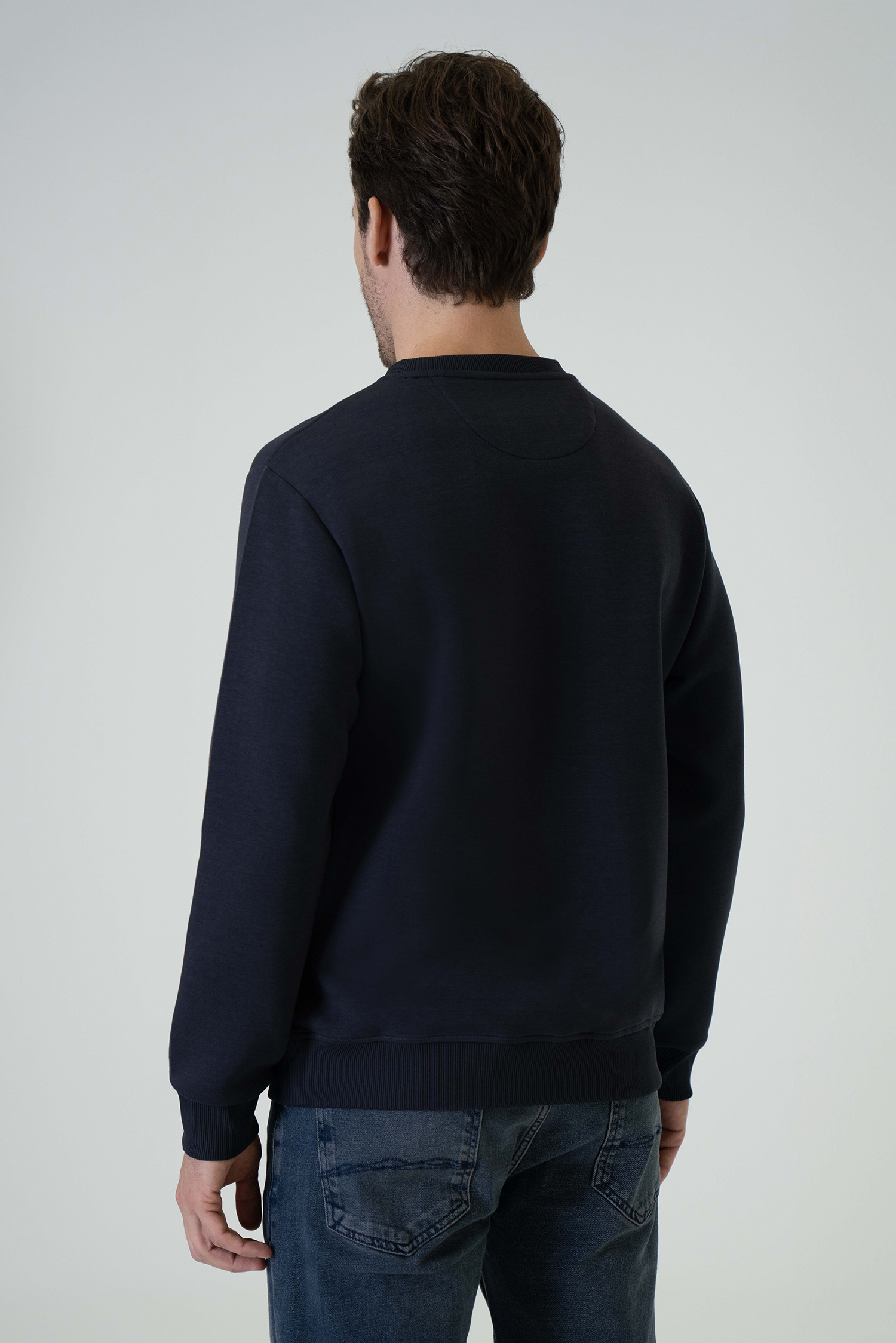 With its minimalist design, this navy blue sweatshirt offers a sporty and modern look with its crew neck detail. Its relaxed fit and soft texture ensure all-day comfort, while the subtle chest logo detail highlights its elegance.