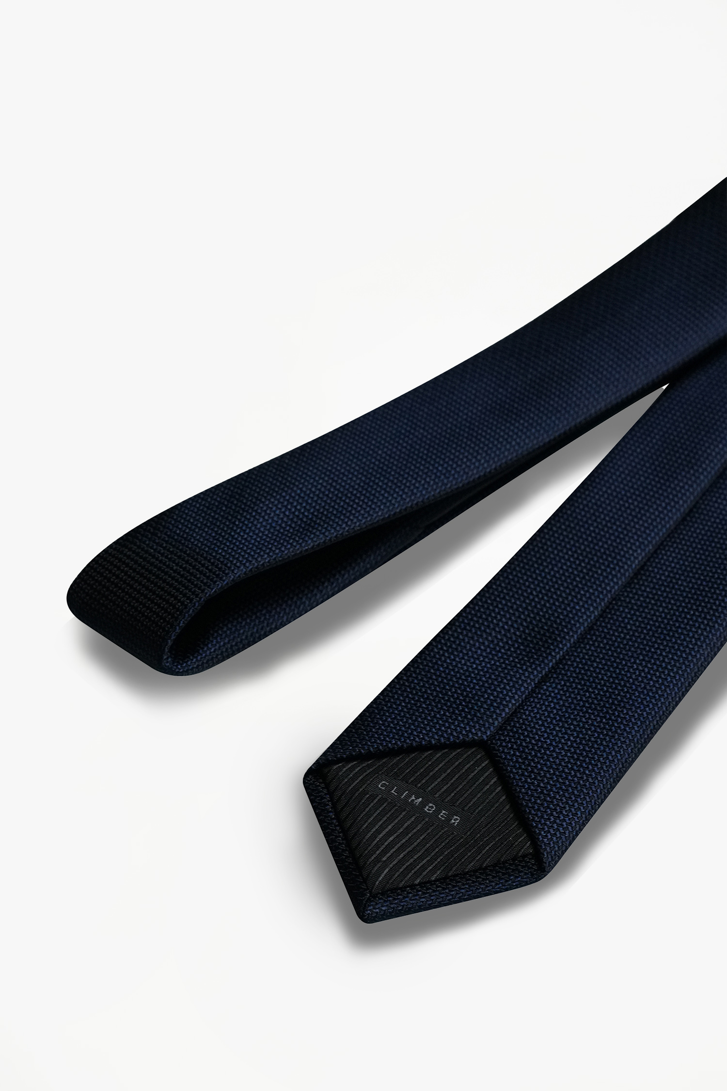 A timeless classic, this navy blue textured tie adds a sophisticated touch to any style with its clean design. Its refined construction ensures a crisp drape, delivering modern elegance for both business looks and special occasions. Crafted from quality fabric, it retains its shape over time.