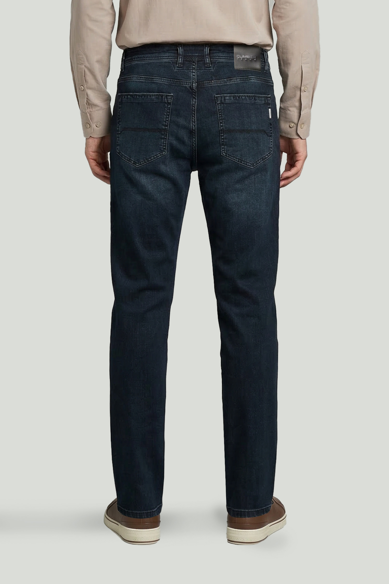 Presenting classic denim style with a modern balance, these jeans create a timeless look with their clean surface and deep blue tone. The Original Fit cut offers an ideal balance between comfort and classic style, while the slightly tapered shape from knee to hem provides a comfortable and well-structured silhouette.