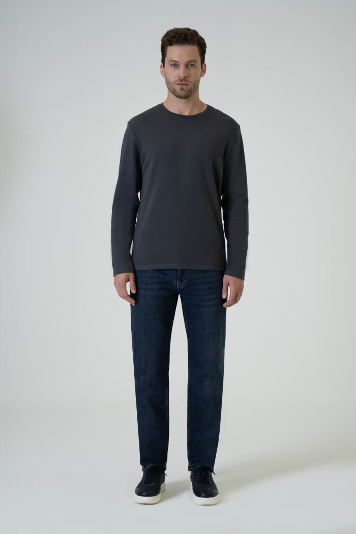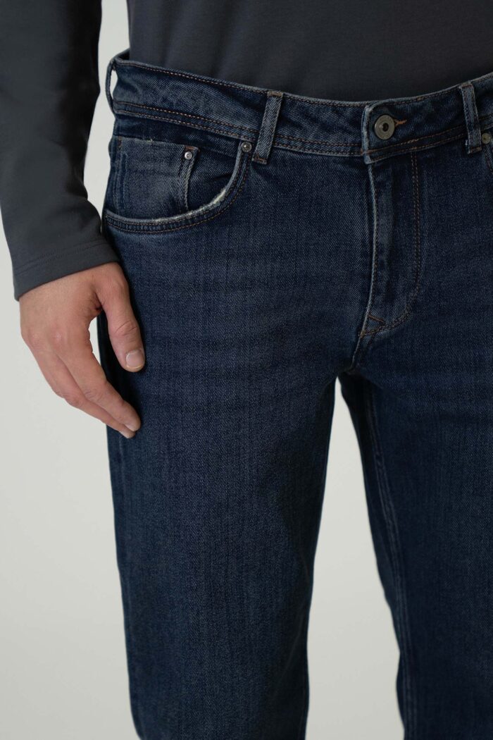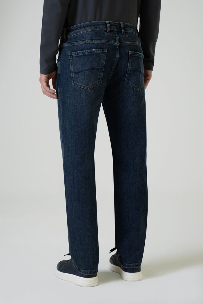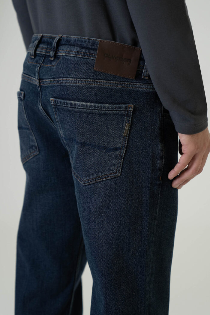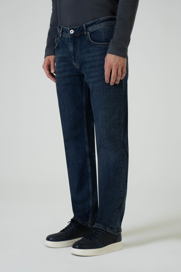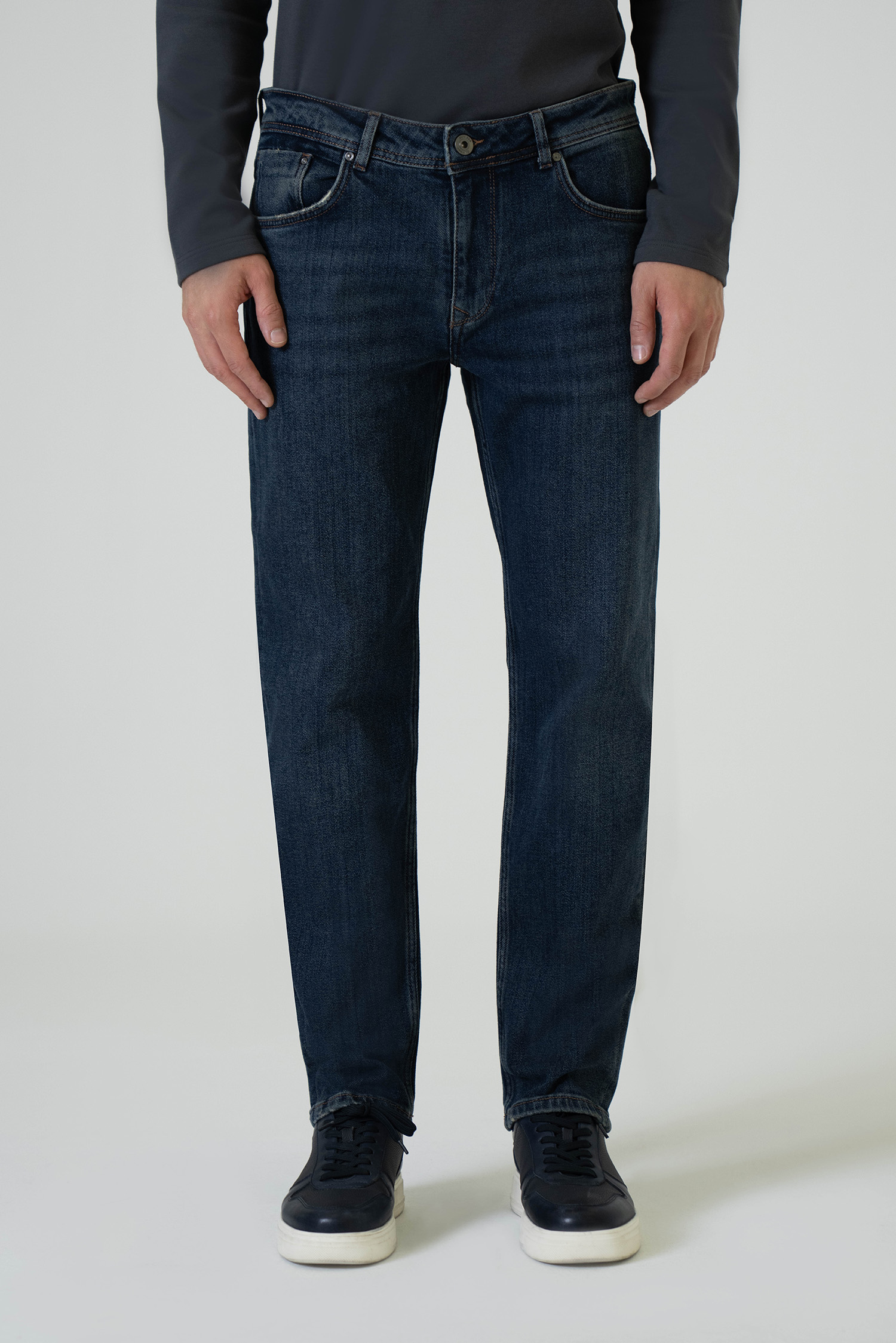 These regular denim pants offer comfortable wear with their mid-rise waist and straight-leg design. Featuring a durable texture and stone-wash effect, they provide both a modern and timeless look.