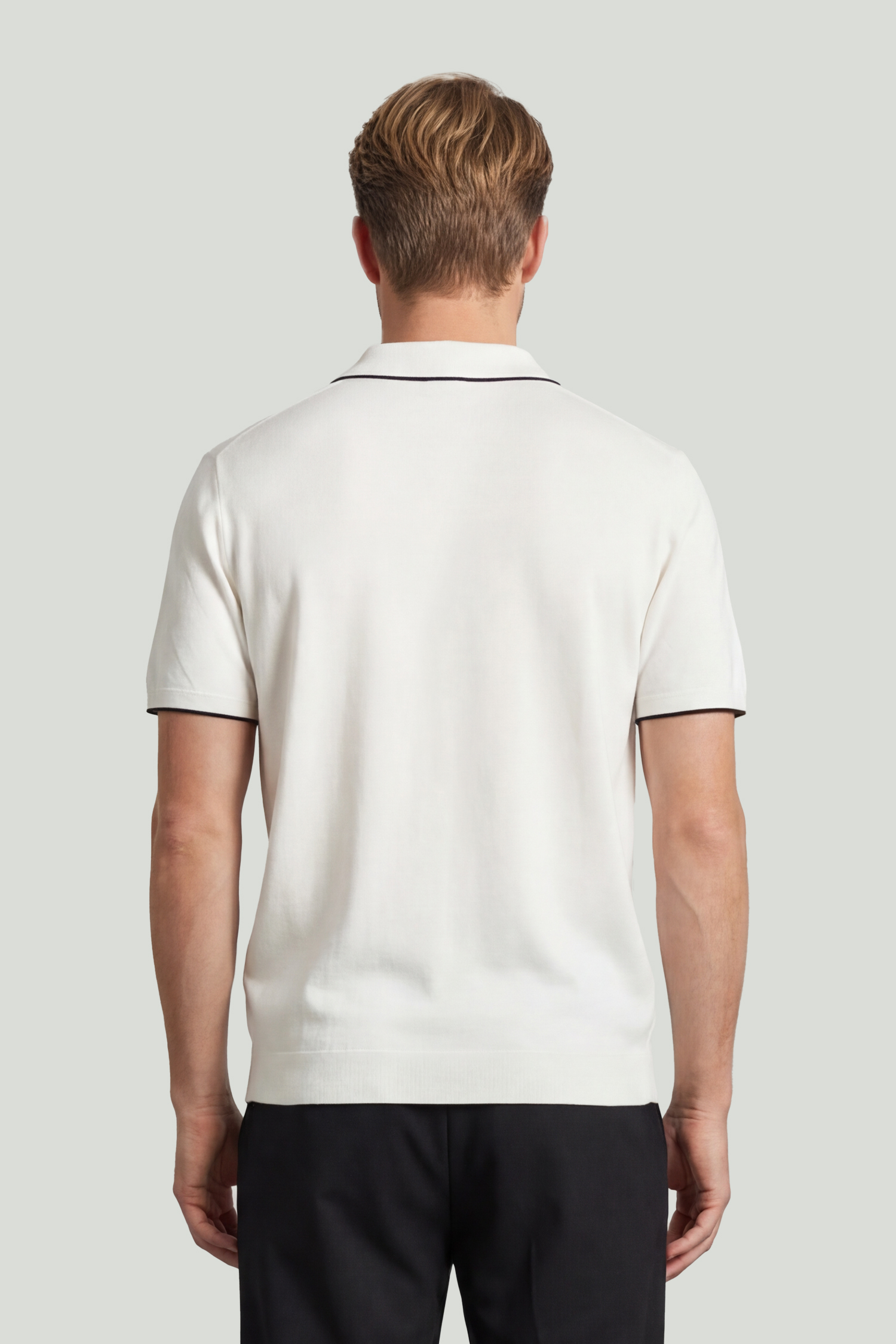 Contrast stripe details on collar and sleeve edges