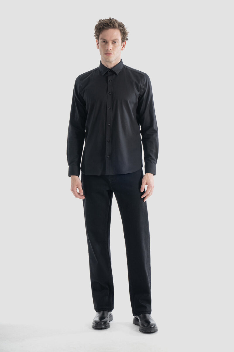 Black straight cut denim is a classic and timeless design that is suitable for daily and formal combinations. It completes your elegance in every environment with its stylish and simple structure.