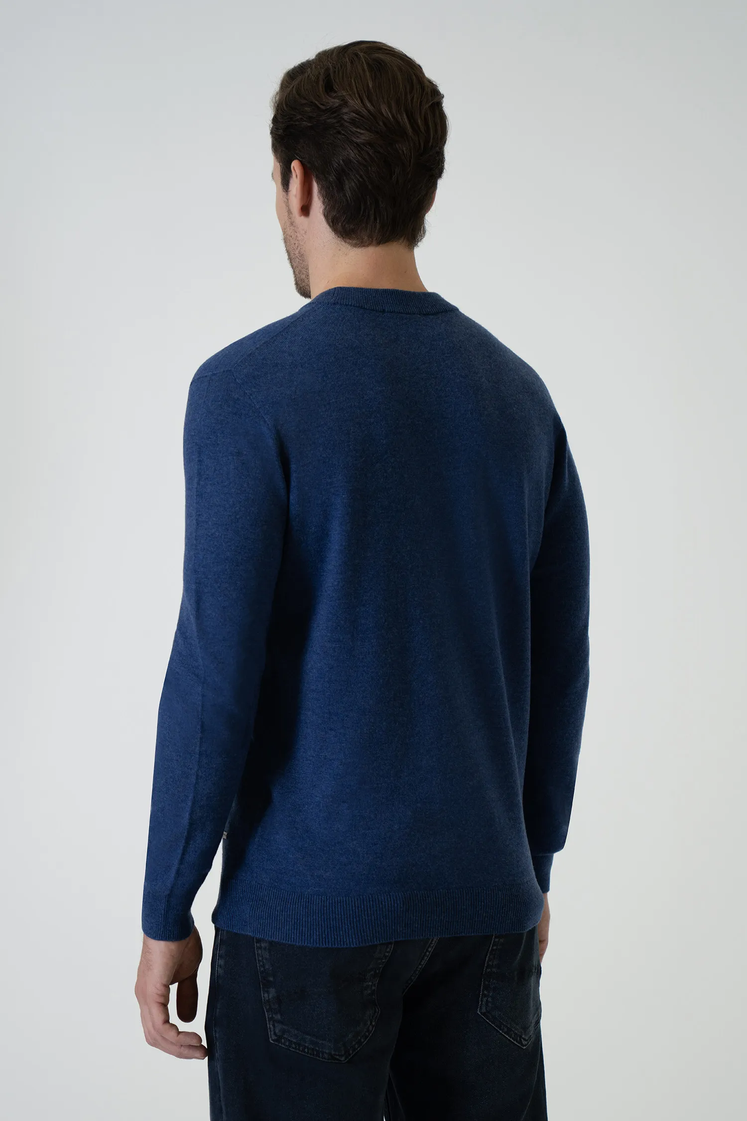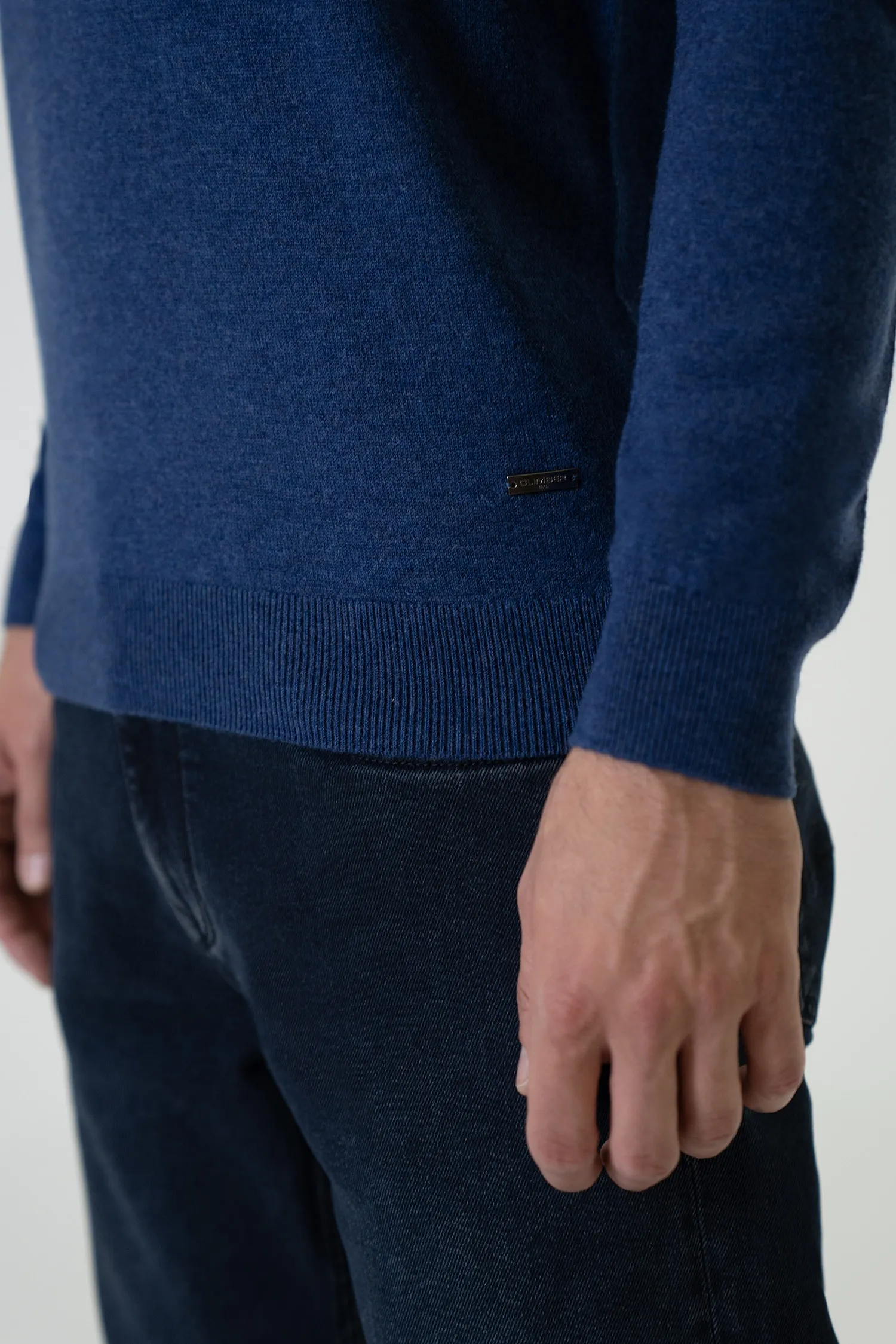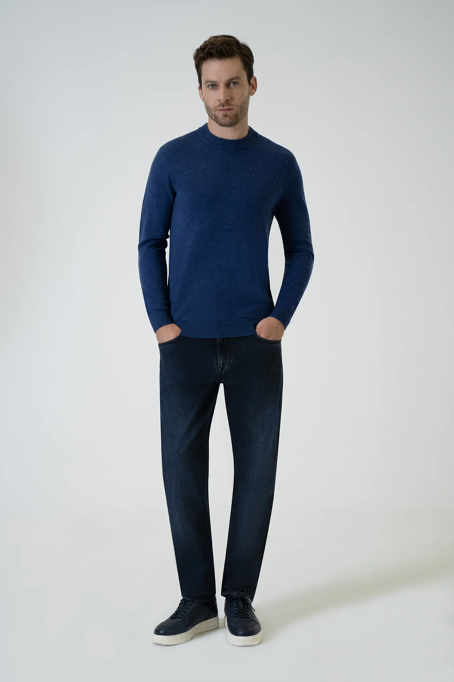 With its deep blue tone, this knitwear offers a modern, calm, and sophisticated look. Its lightweight structure, naturally warming texture, and all-day comfortable fit make it an essential piece in any wardrobe.