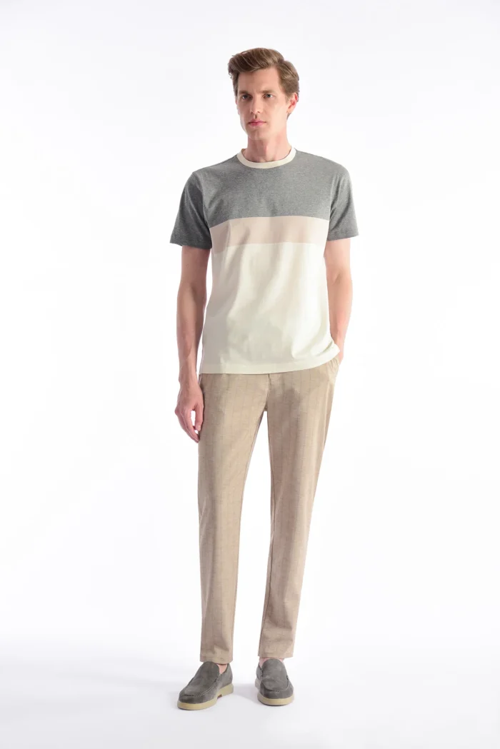 You can achieve a stylish look in the summer months by combining it with solid color t-shirts or light-toned shirts. It creates a simple and stylish style when completed with loafers or white sneakers.