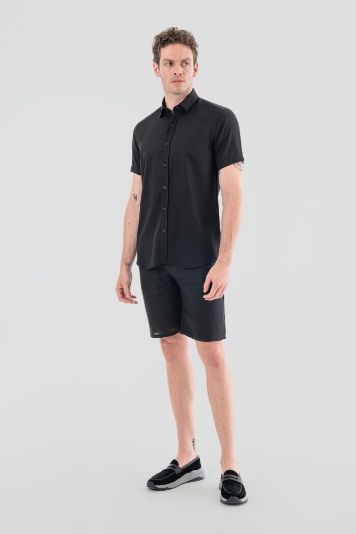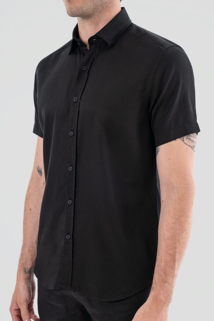Tencel Black Shirt With Short Sleeves