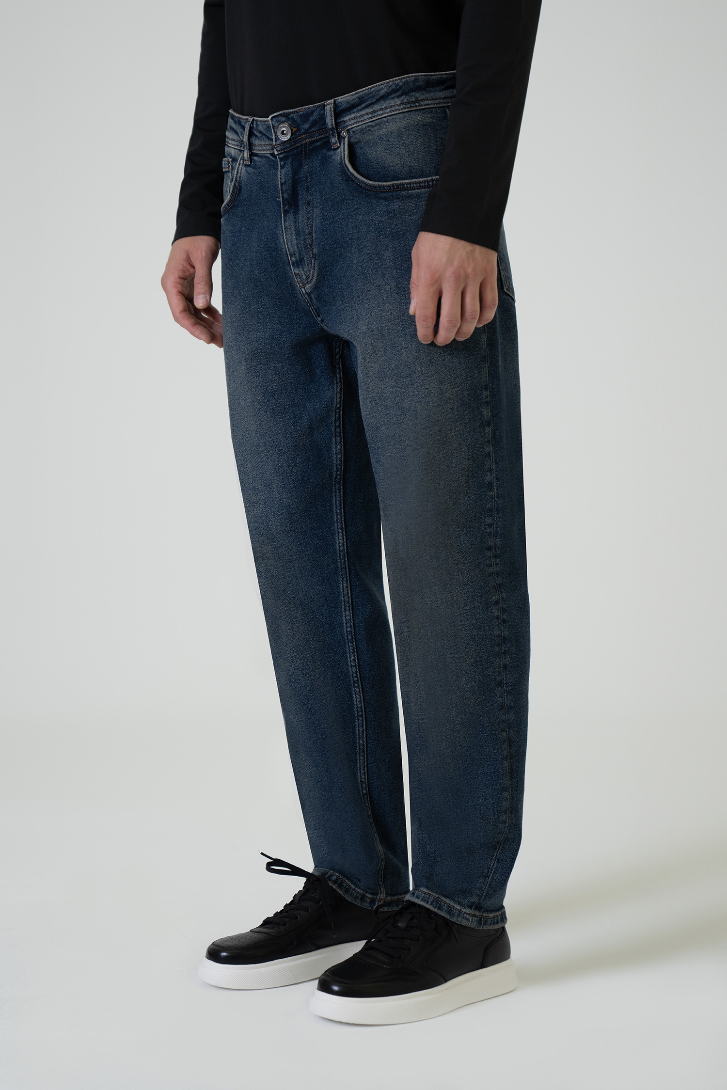 With its high-waist form and carrot-cut design, the Vase denim pants combine modern elegance with comfort. The tinted stone-wash effect gives it a unique look.