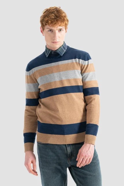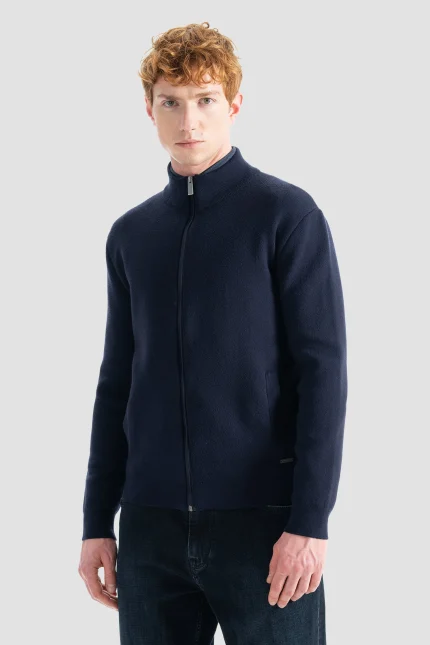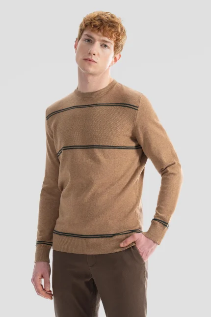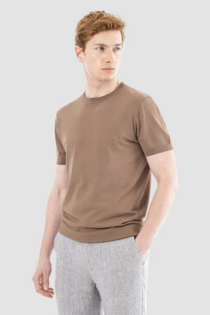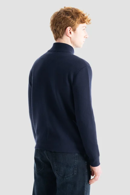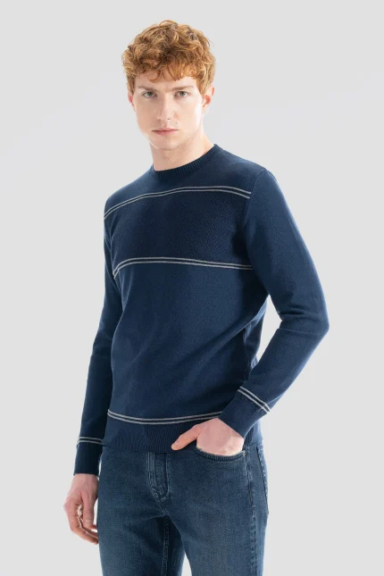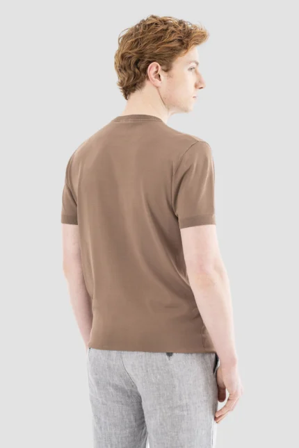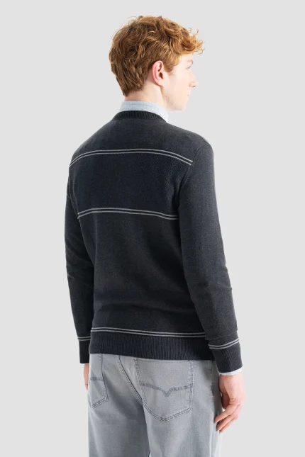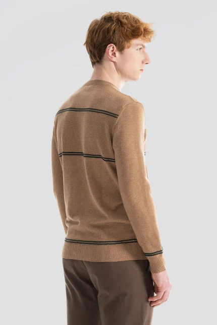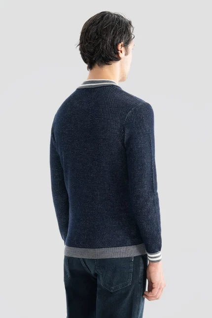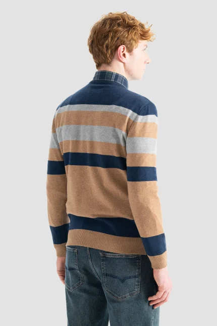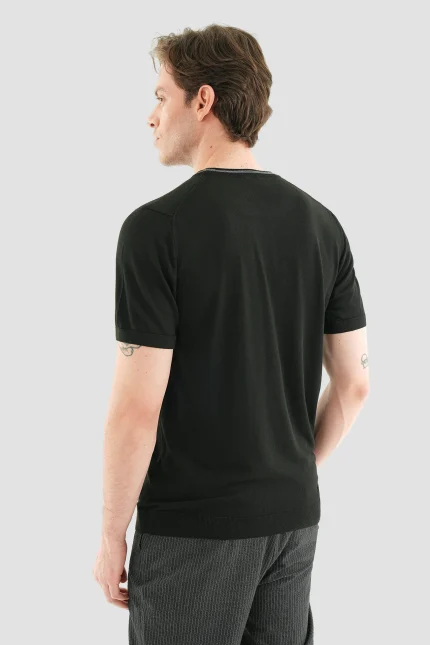 Zippered Collar and Stripe Detailed Polo Neck Knit T-Shirt