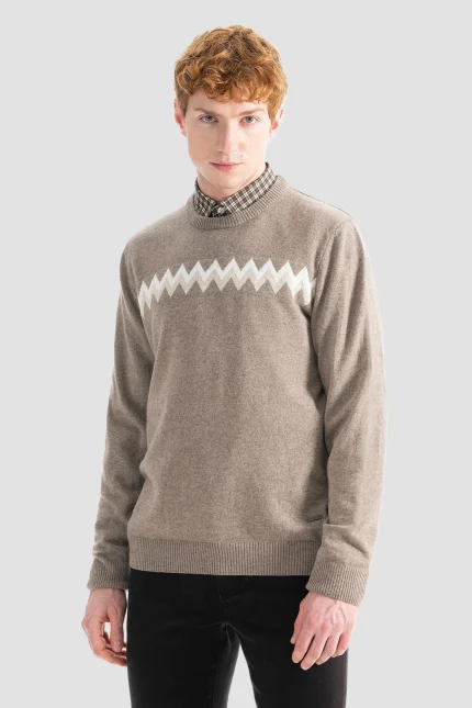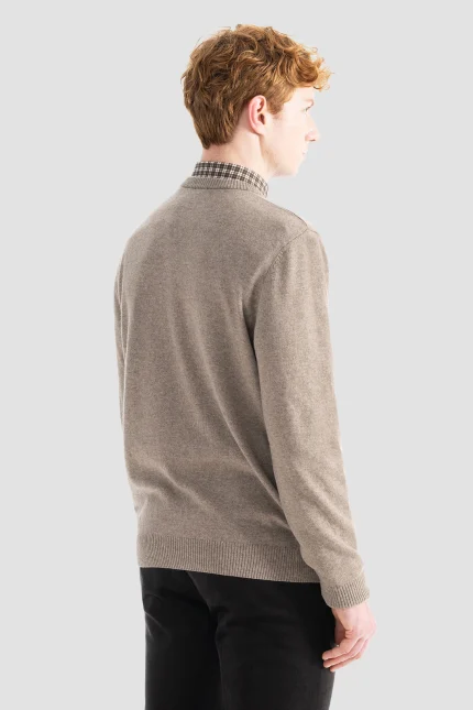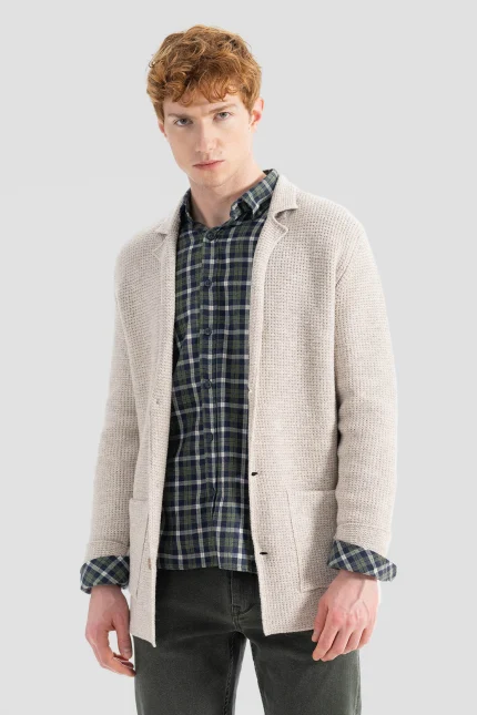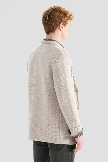 Бежевый вязаный текстурированный свитер-кардиган на пуговицах