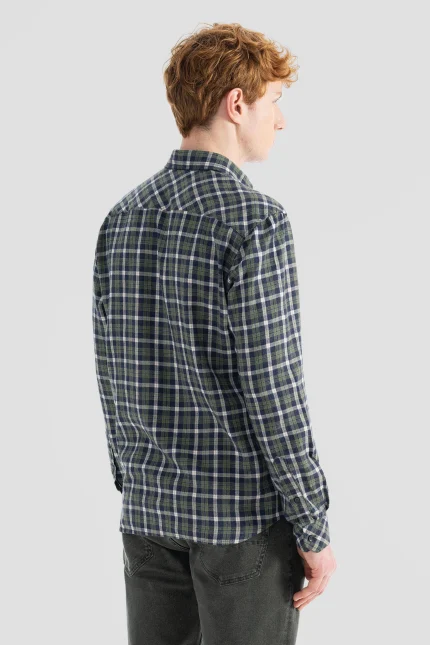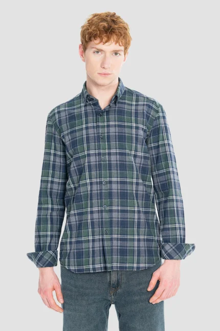 Зелено-голубая клетчатая узорчатая зимняя рубашка
