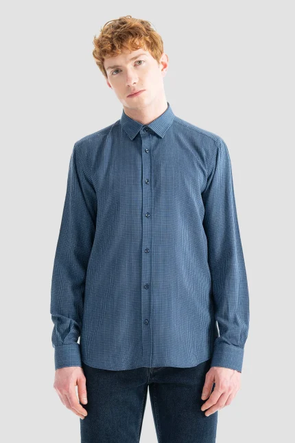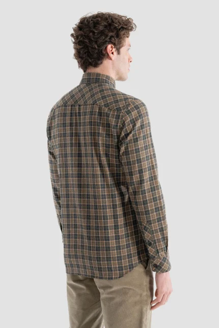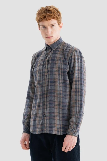 Сине-коричневая клетчатая узорчатая зимняя рубашка