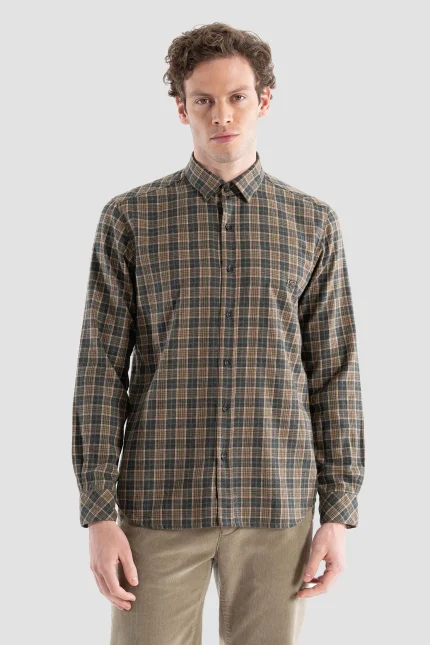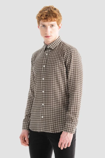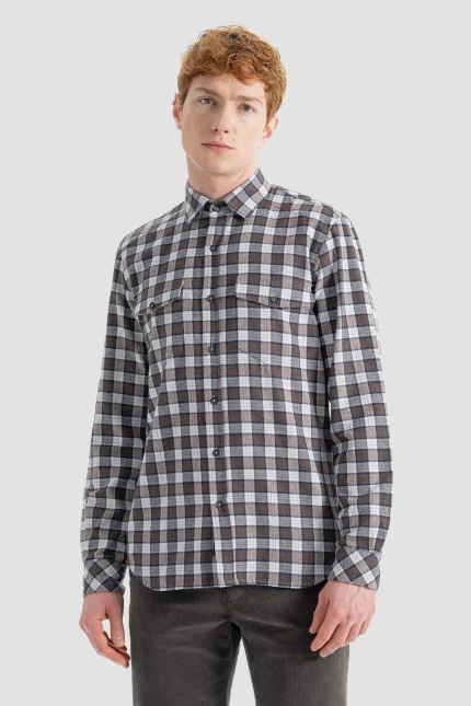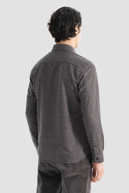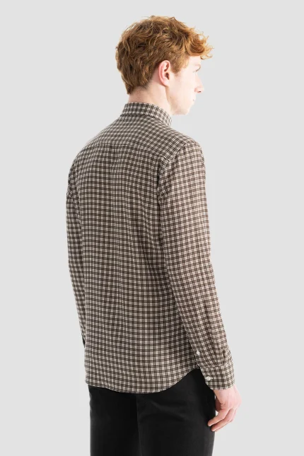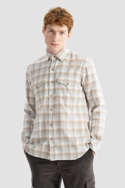 Коричнево-белая клетчатая узорчатая зимняя рубашка