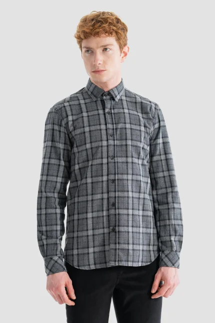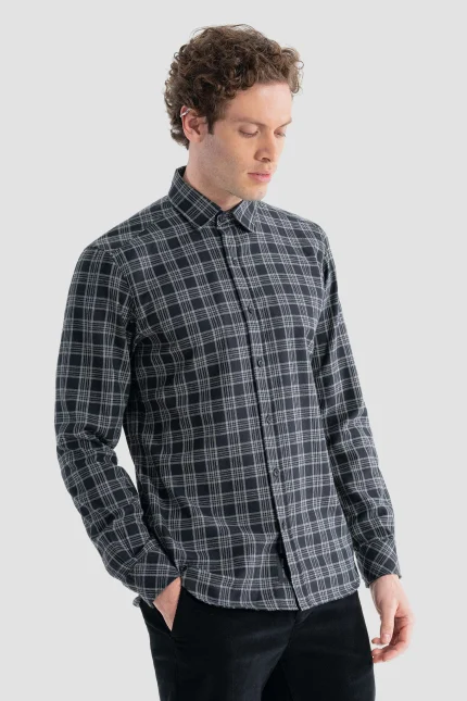 Черно-белая клетчатая узорчатая зимняя рубашка