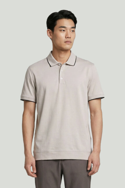 Футболка-поло с воротником из мерсеризованной ткани цвета экрю