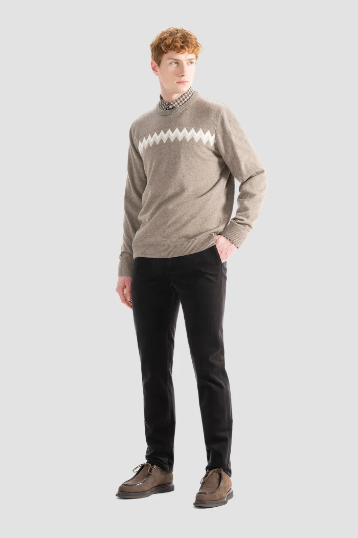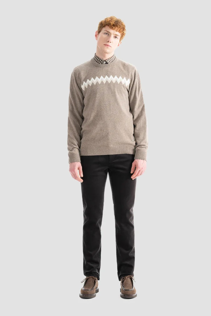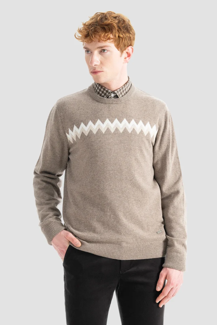 Бежевый свитер с зигзагообразным узором на шее