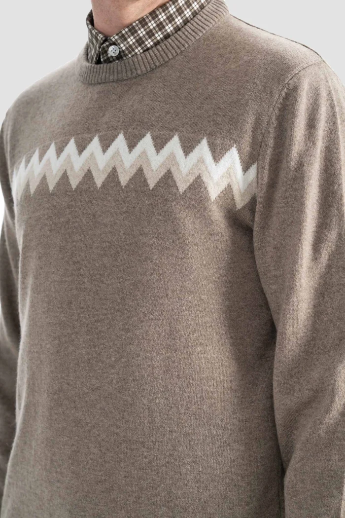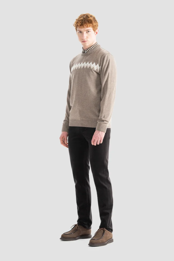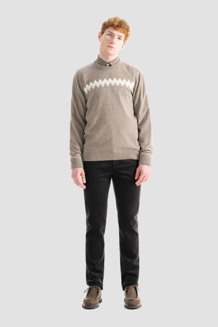 Этот свитер, который добавляет современный штрих к его простой элегантности благодаря зигзагообразному узору на груди, можно с комфортом использовать как в деловых, так и в повседневных сочетаниях.