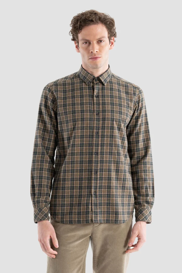 Эта клетчатая рубашка, которая обязательно должна быть в гардеробе стильных мужчин, предлагает одновременно комфорт и элегантность.nОна обеспечивает комфорт в течение всего дня благодаря своей мягкой текстуре и качественной ткани.nКлассический клетчатый узор сочетается с современным кроем и легко адаптируется к Вашим повседневным комбинациям.nЭта рубашка, которую можно использовать как для элегантности в выходные, так и для комфорта на работе, позволит Вам привлекать внимание в любой обстановке благодаря своим естественным цветовым оттенкам.