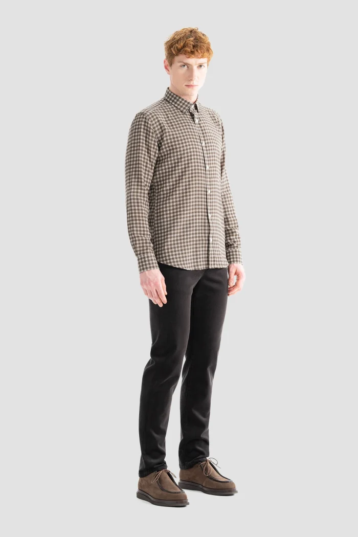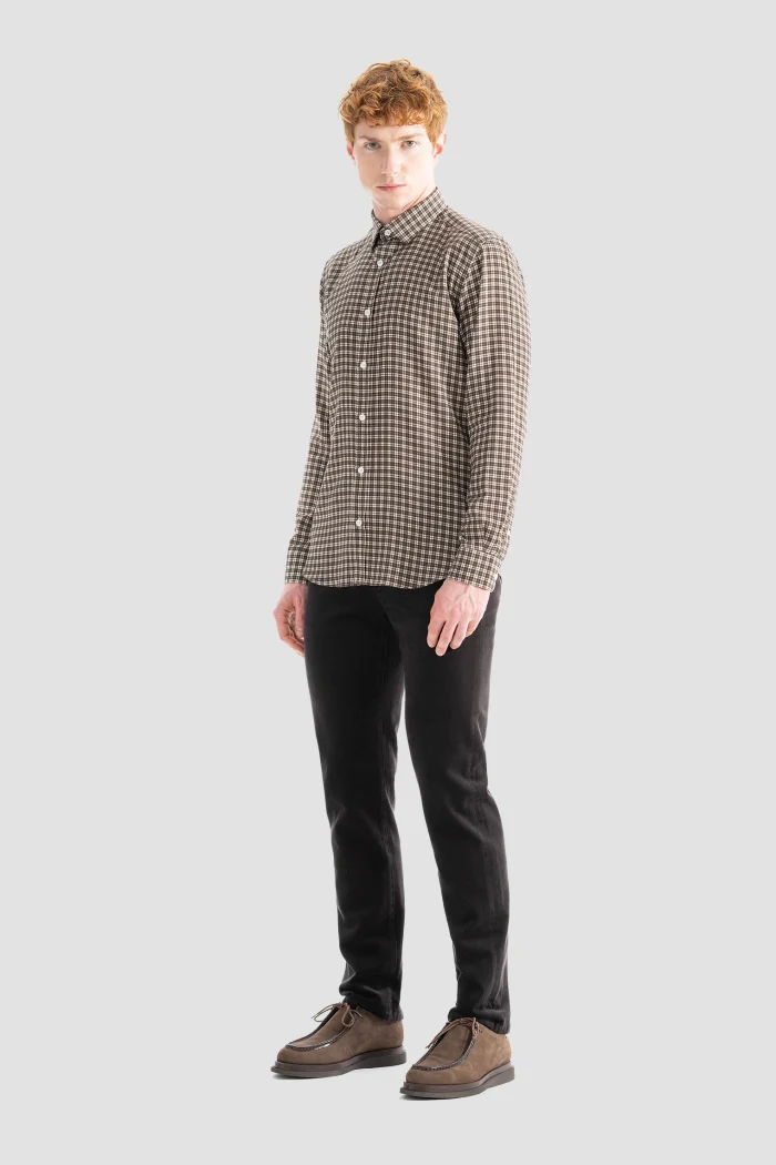 Эта коричневая клетчатая рубашка, незаменимая часть комфортного и стильного стиля, внесет разнообразие в Ваши повседневные комбинации.nВ то время как она обеспечивает комфорт в течение всего дня благодаря мягкой текстуре и качественной ткани, она добавляет современный штрих к Вашему стилю благодаря клетчатому узору.nБлагодаря облегающему крою она элегантно облегает тело и помогает Вам создать спортивный и стильный образ.nЭта рубашка, которую Вы можете легко выбрать в любой обстановке, сочетая ее с джинсами или более классическими вещами, станет одним из любимых предметов Вашего гардероба.